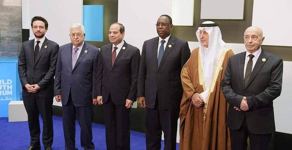 وكان في استقبال سمو ولي العهد، لدى وصوله إلى مقر انعقاد المنتدى، الرئيس المصري عبدالفتاح السيسي.