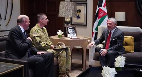نيروز الإخبارية : نيروز الاخبارية : التقى جلالة الملك عبدالله الثاني ، بحضور سمو الأمير الحسين بن عبدالله الثاني، ولي العهد، مع رئيس جمهورية أديغيا – روسيا الاتحادية مراد كومبيلوف ووزير الدفاع الياباني كونو تارو ورئيس قوات الدفاع الأسترالية الفريق أول أنغوس كامبل في قصر الحسينية