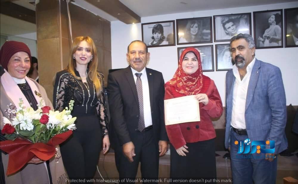 في ختام الحفل تم تقديم درع وشهادة تقديريه من الاتحاد العالمي للاغاثه مقدمه عن الاتحاد  الدكتور جمال الشريف لسفيره السلام في القدس الدكتورة امنية عويس.