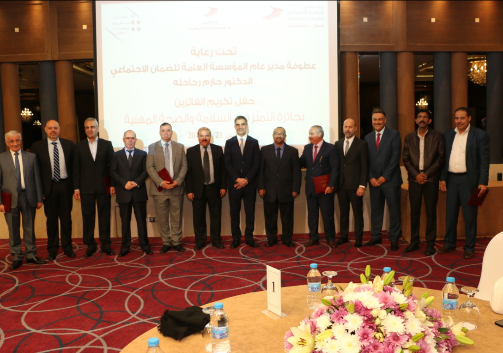 رعى مدير عام المؤسسة العامة للضمان الاجتماعي الدكتور حازم رحاحلة، بحضور أعضاء مجلس إدارة المؤسسة وممثلي عدد من الفعاليات الاقتصادية والعمّالية والنقابية والإعلامية الحفل الذي أقامته المؤسسة لتكريم المنشآت الفائزة بالجوائز التقديرية والتشجيعية في السلامة والصحة المهنية للعام 2018، وهي الجائزة التي تم تخصيصها سنوياً لتكريم الجهات المتميزة بمجالات السلامة والصحة المهنية فيما حجبت الجائزة هذه المرة عن الأفراد.