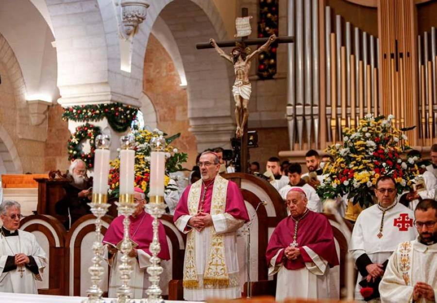 وألقى المدبر الرسولي لبطريركية القدس للاتين المطران بييرباتيستا بيتسابالا، الذي ترأس قدّاس منتصف الليل عِظة دينية، دعا فيها العالم أجمع إلى العمل من أجل إحلال السلام في مدينة السلام ومدينة مهد السيد المسيح بيت لحم.