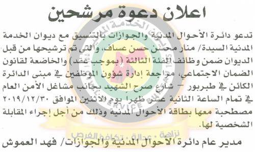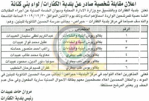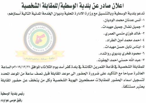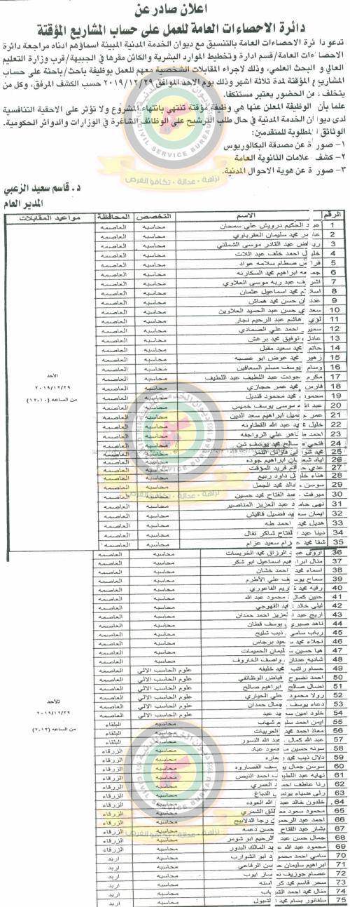 التالية اسماؤهم لاجراء المقابلات الشخصية وعقد الامتحان التنافسي لغايات