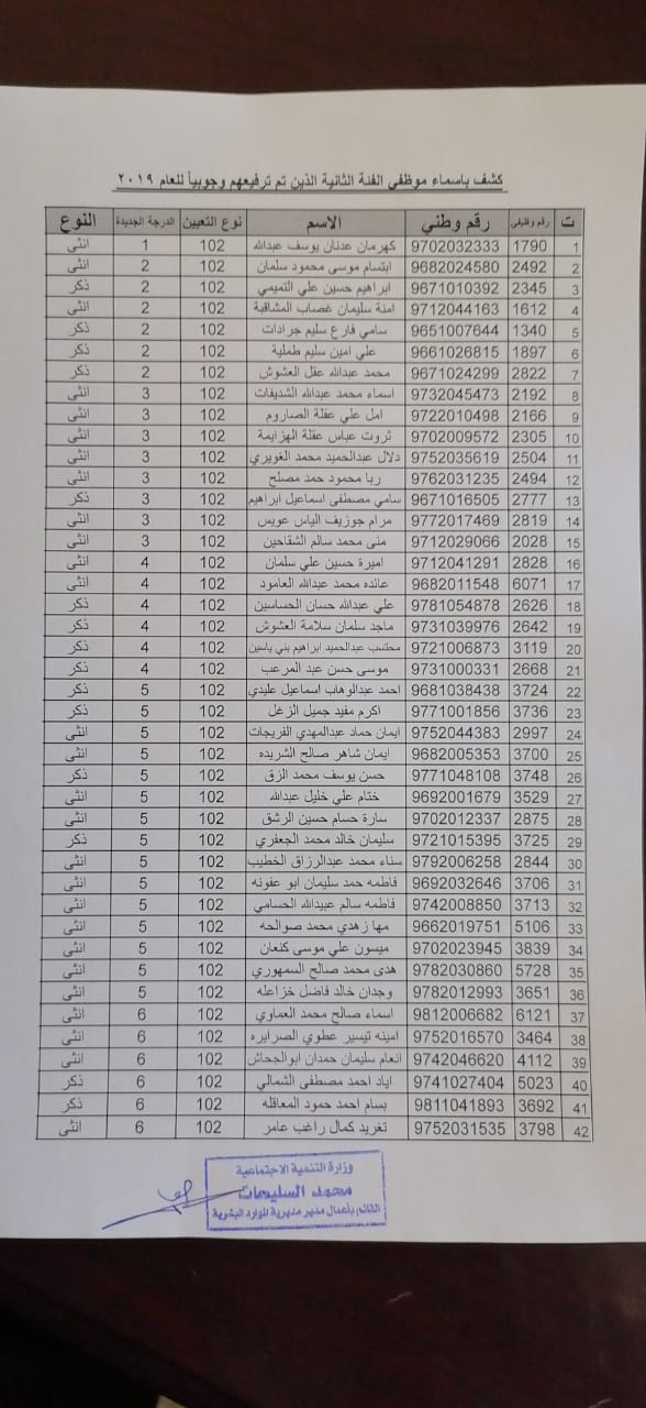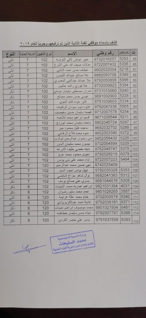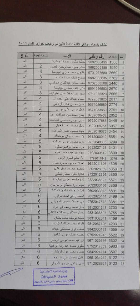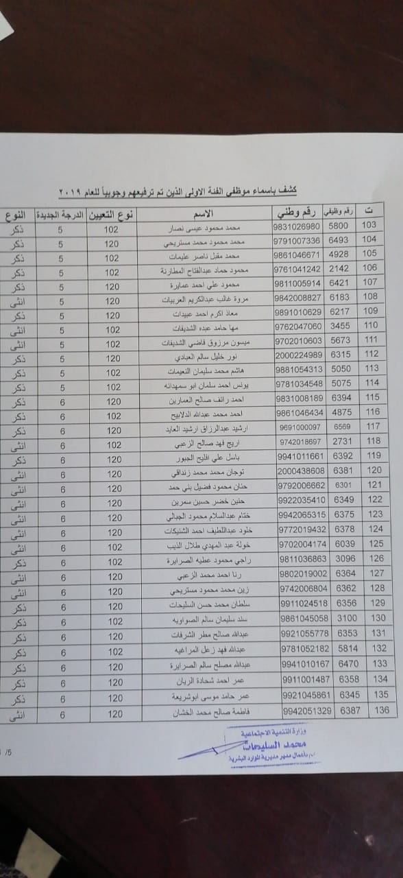 نيروز الإخبارية قررت:- وزير التنمية الاجتماعية ترفيع (375) موظفاً من الفئتين الاولى والثانية ترفيعاً وجوبياً وجوازياً الى الدرجات التي يستحقونها و جاء قرار الوزير وفق احكام نظام الخدمة المدنية الساري المفعول واستنادا الى قرار لجنة الموارد البشرية ، يذكر ان مديرية الموارد البشرية في وزارة التنمية الاجتماعية قد نفذت حوالي (190) برنامجاً تدريبياً خلال عام 2019 استفاد منه ما يزيد عن 2200 موظف.