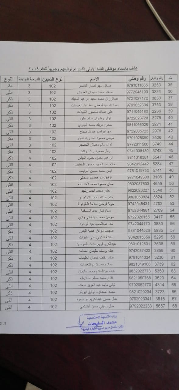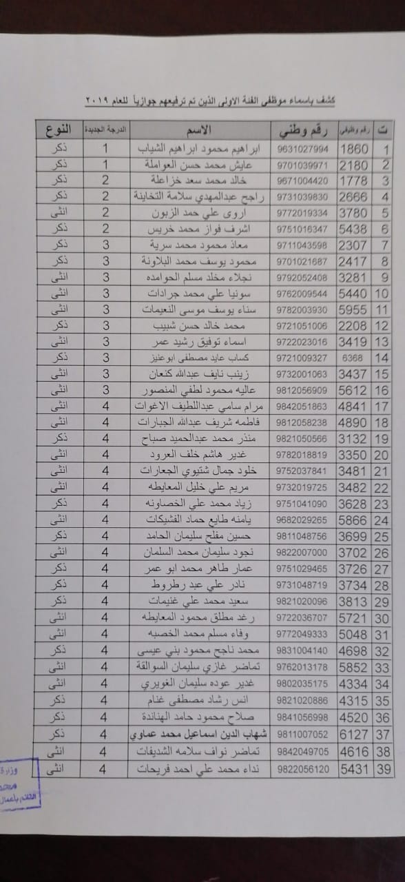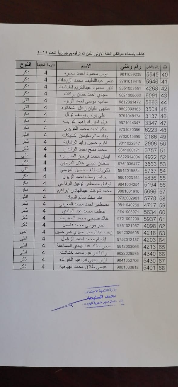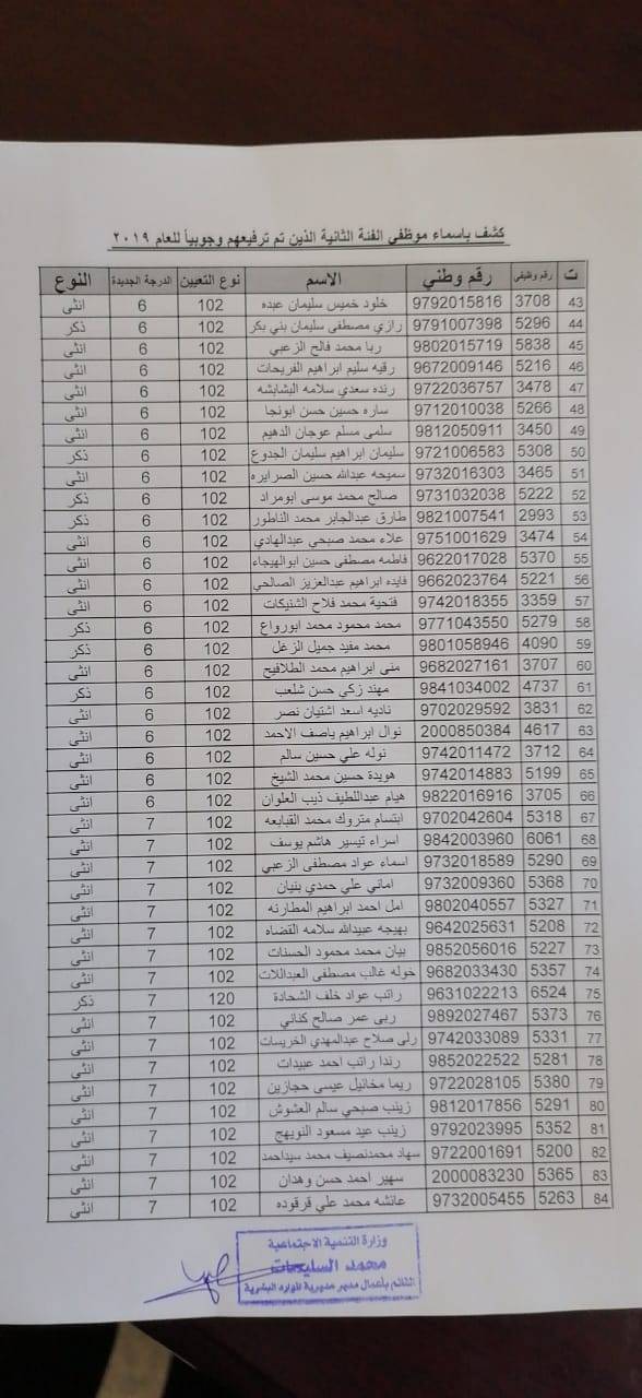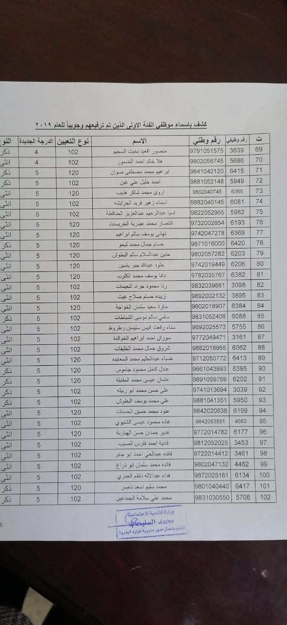 نيروز الإخبارية قررت:- وزير التنمية الاجتماعية ترفيع (375) موظفاً من الفئتين الاولى والثانية ترفيعاً وجوبياً وجوازياً الى الدرجات التي يستحقونها و جاء قرار الوزير وفق احكام نظام الخدمة المدنية الساري المفعول واستنادا الى قرار لجنة الموارد البشرية ، يذكر ان مديرية الموارد البشرية في وزارة التنمية الاجتماعية قد نفذت حوالي (190) برنامجاً تدريبياً خلال عام 2019 استفاد منه ما يزيد عن 2200 موظف.