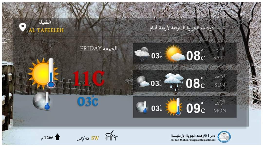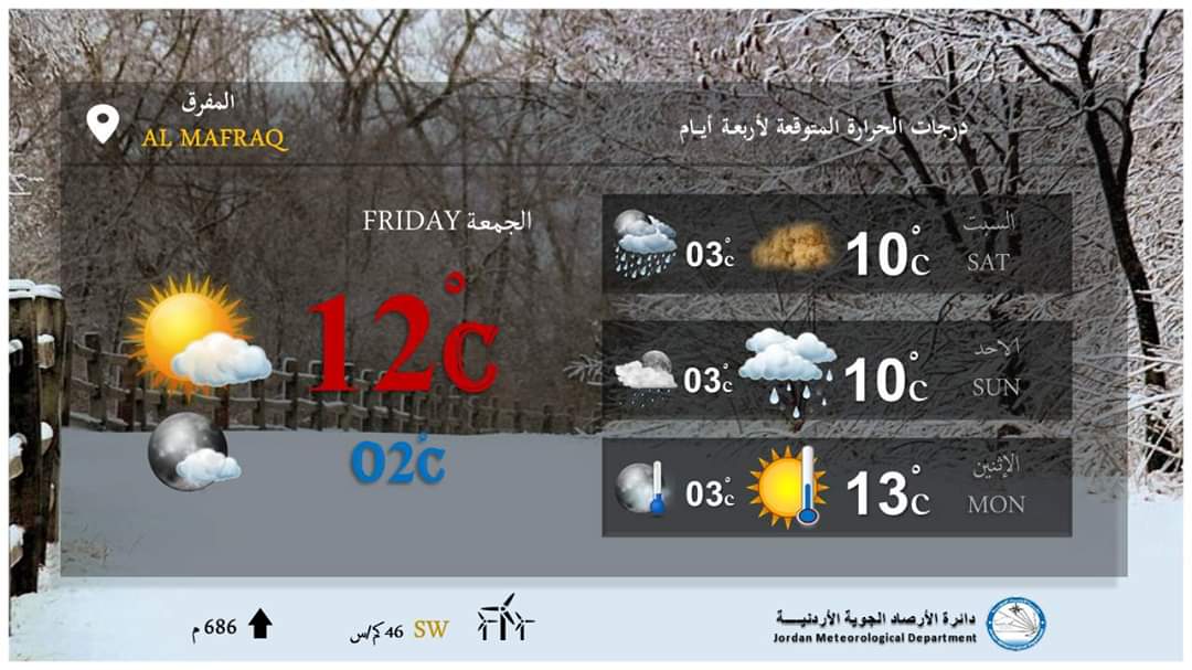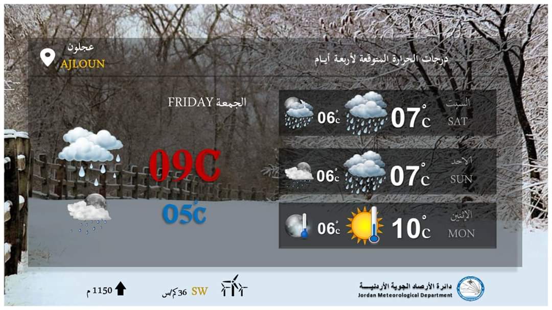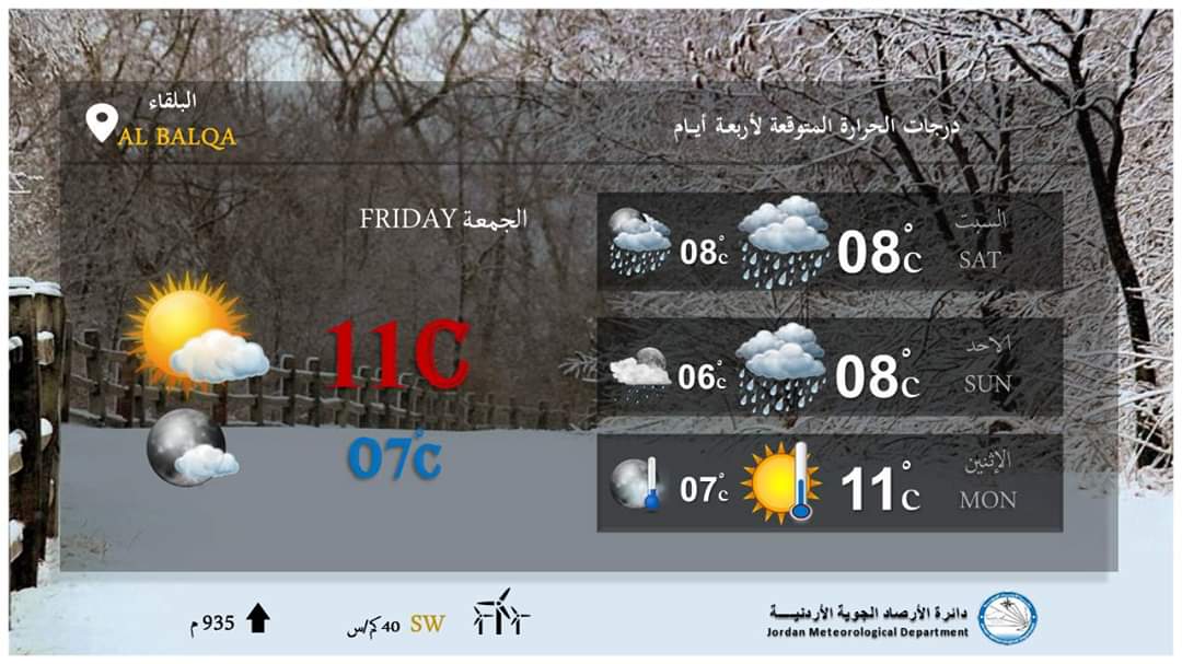 : حالة الطقس في محافظات المملكة لهذا اليوم الجمعة والايام الثلاث القادمة :-