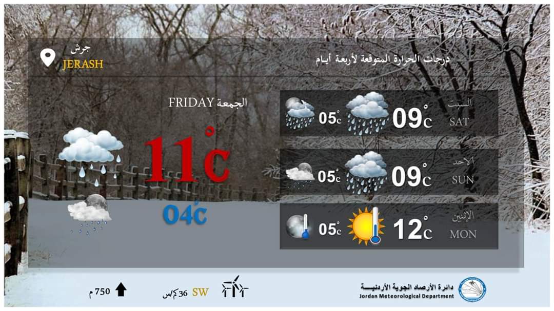 حالة الطقس في محافظات المملكة لهذا اليوم الجمعة والايام الثلاث القادمة