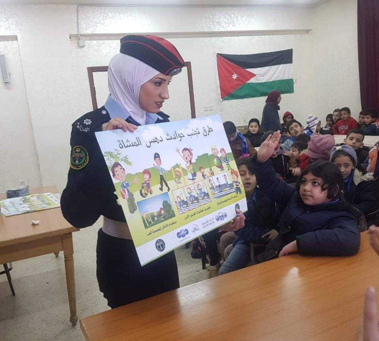 حيث تم الحديث عن اطلاق مبادرة كفى لنزيف الطرقات وعن حوادث السير و قواعد العبور الامن للطريق والاماكن المخصصة  لعبور الطريق و اداب السير على الرصيف وقواعد ركوب السياره وتم توزيع بروشورات توعيه للطلبة .