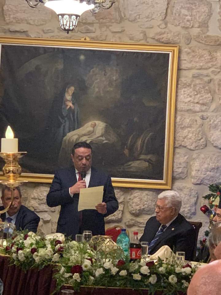 نقل ممثل جلالة الملك عبد الله الثاني، وزير الدولة لشؤون رئاسة الوزراء سامي الداوود، تحيات جلالة الملك والحكومة والشعب الأردني للأشقاء الفلسطينيين المحتفلين بأعياد الميلاد المجيدة.