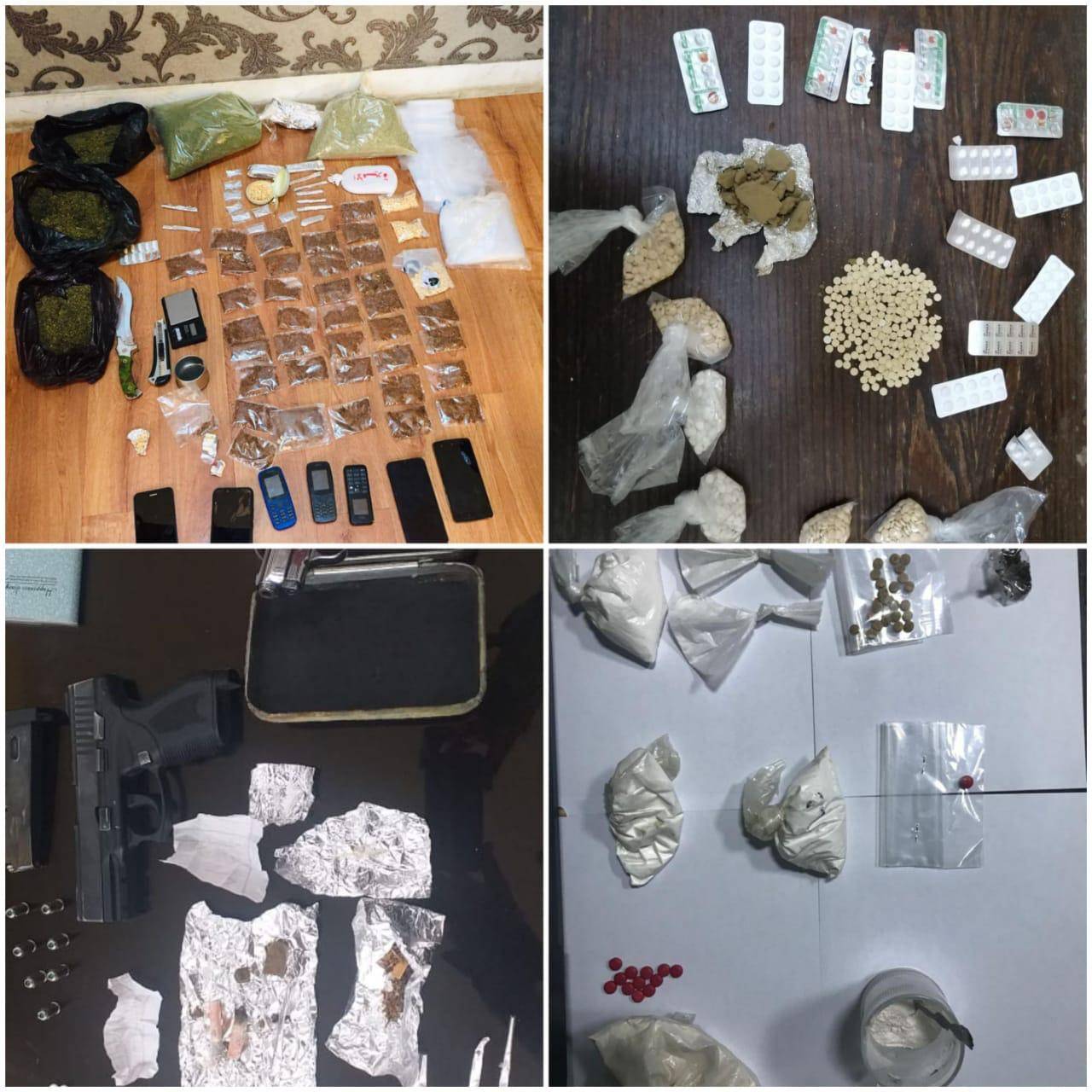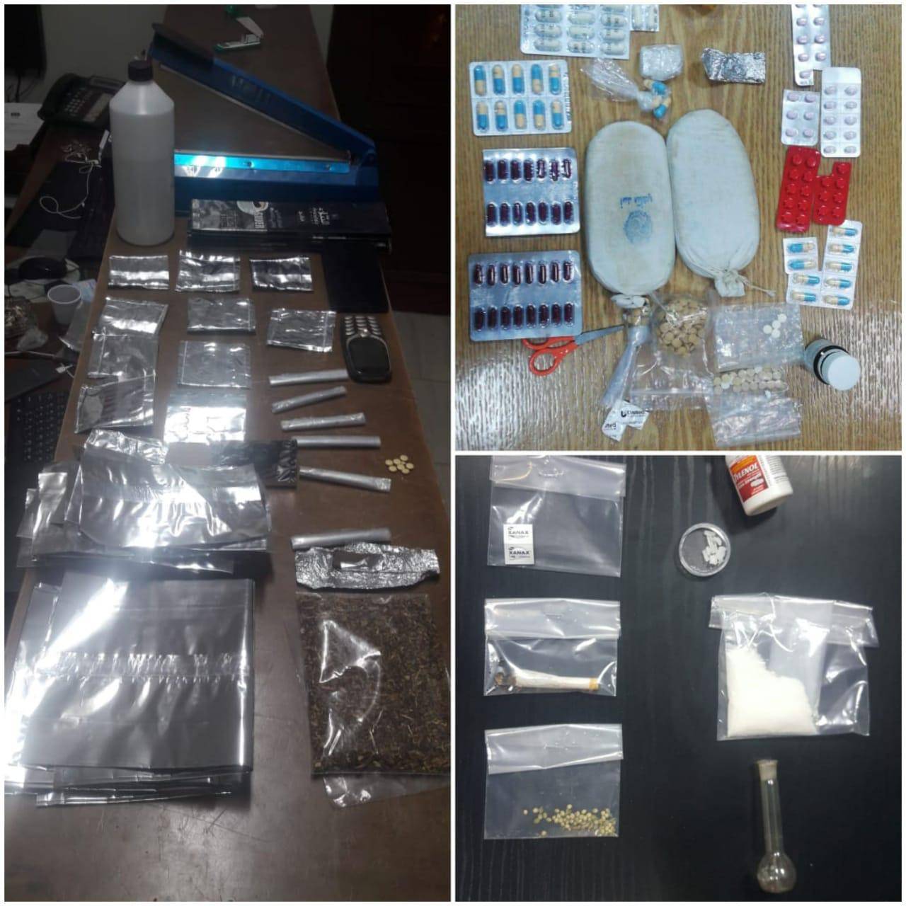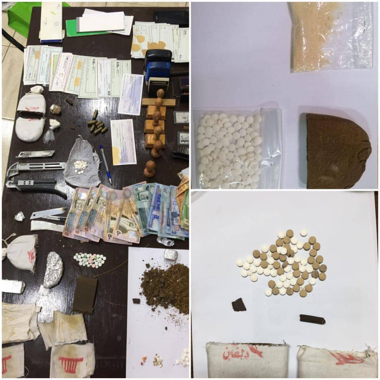 وكان ابرز تلك القضايا في محافظة اربد حيث دوهم مساء الامس احد المنازل بعد التأكد من وجود شخص مطلوب خطير بحقه ١٤ طلباً امنياً بقضايا مخدرات وحمل السلاح واطلاق العيارات النارية ، حيث القي القبض عليه بعد ان ابدى مقاومة شديدة وضبط عدد من  الأشخاص برفقته والتحقيق جارٍ معهم،وبتفتيش المنزل عثر داخله على ٦ كغم من مادة الحشيش ، و٨ اكياس بداخلها بودرة الحشيش الصناعي ، وكمية من الحبوب المخدرة ومركبة مطلوبة ولوحات مركبات مزورة .