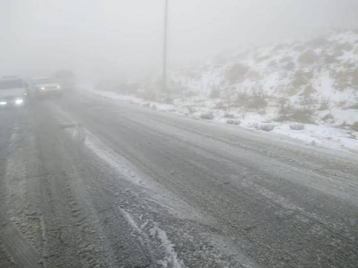 الطفيلة، شهدت تساقطا للثلوج على طريق بصيرا القادسية، بالاضافة لتشكل