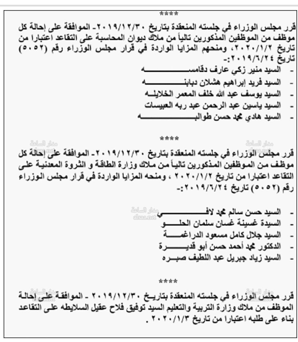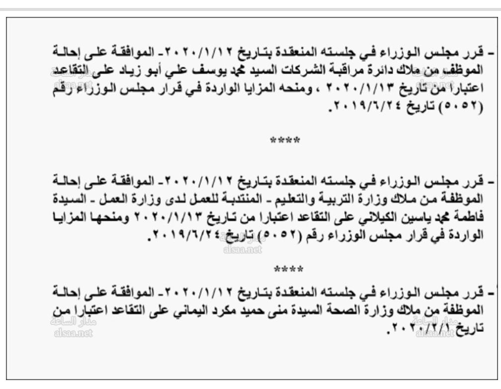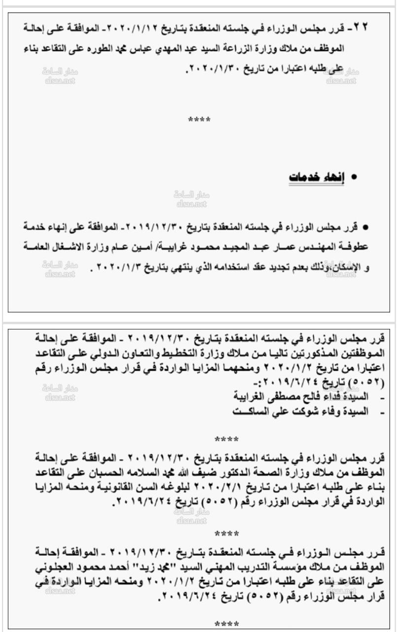 "بالاسماء " إحالات وترفيعات وإنهاء خدمات موظفين في وزارات الدولة.