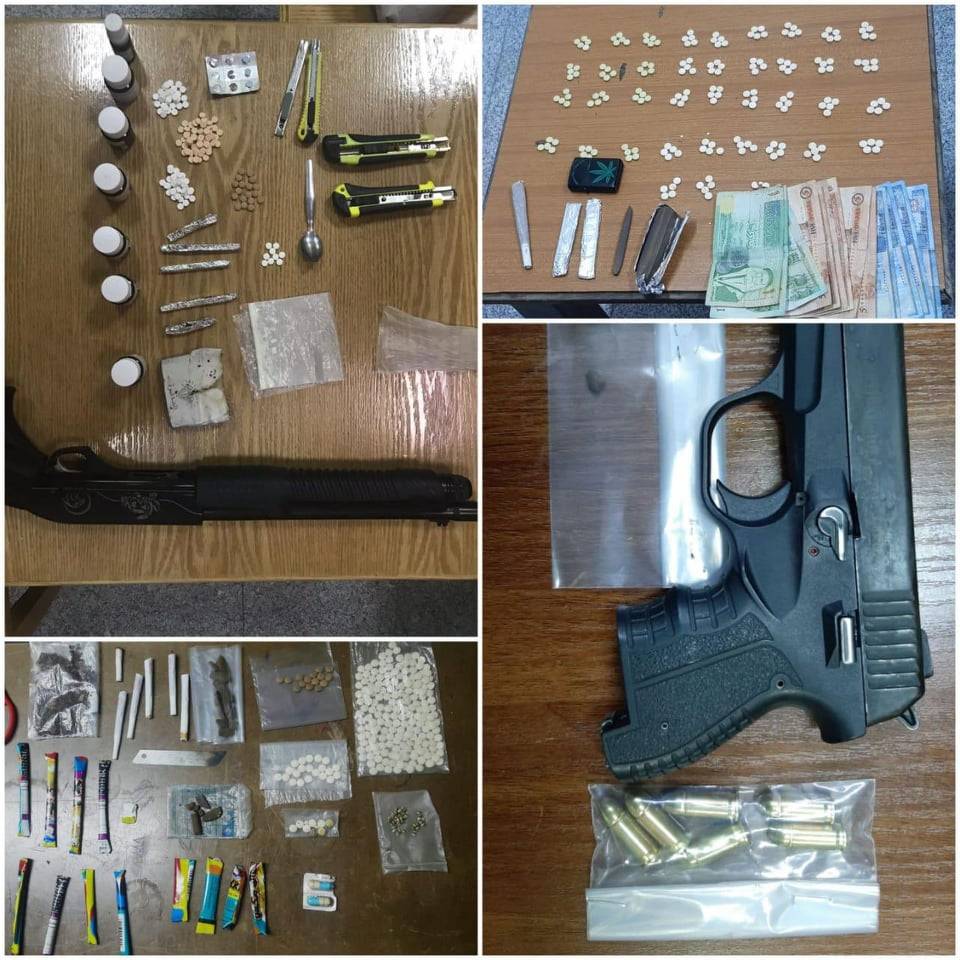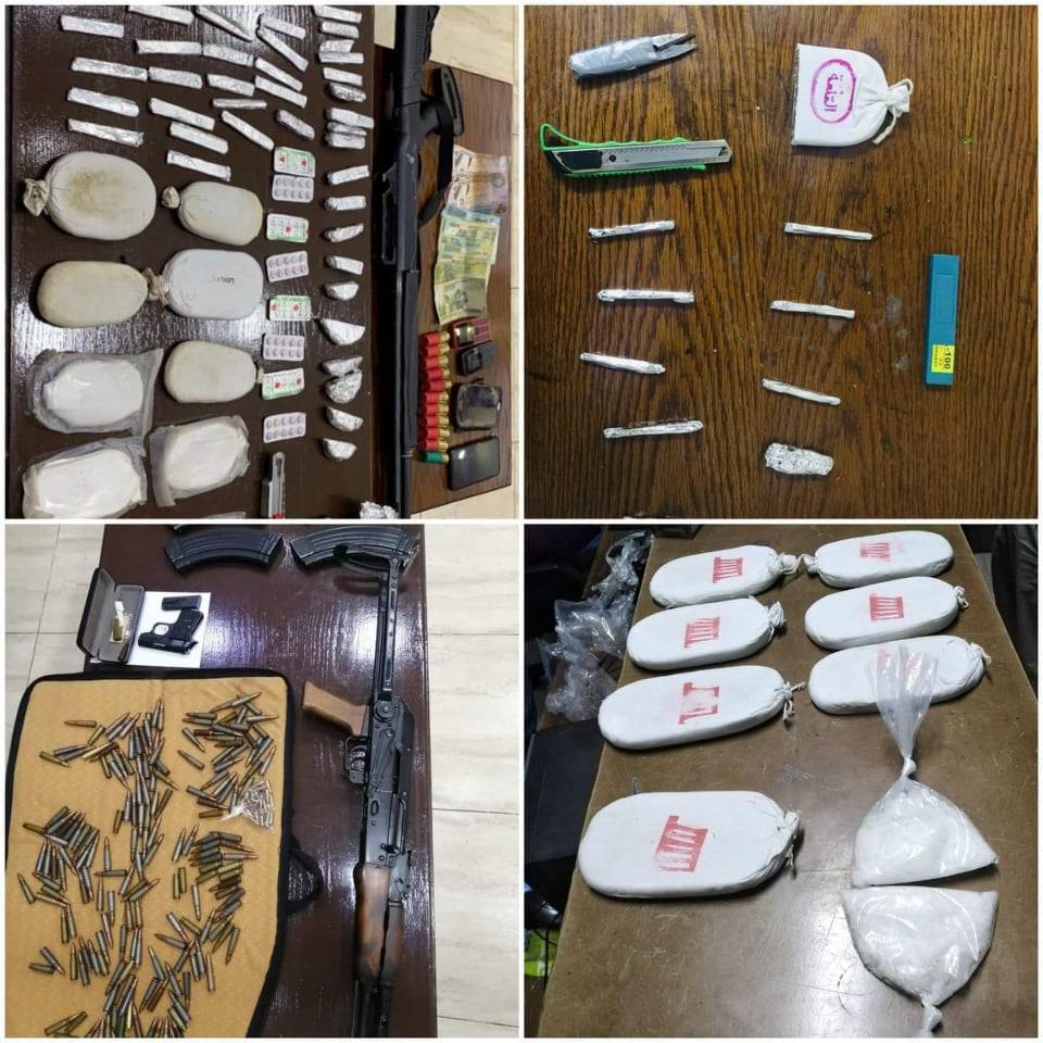 المخدرة المختلفة وأربعة أسلحة نارية احدها أوتوماتيكي.
