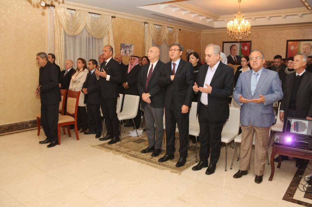 وقد بدأ الحفل بالسلام الجمهوري الأذربيجاني والسلام الملكي الأردني ٠٠ قد طلب سعادة سفير أذربيجان من الحضور الوقوف دقيقة صمت حدادا على أرواح الشهداء٠