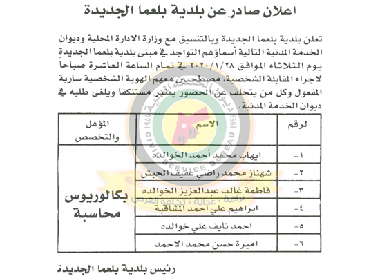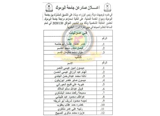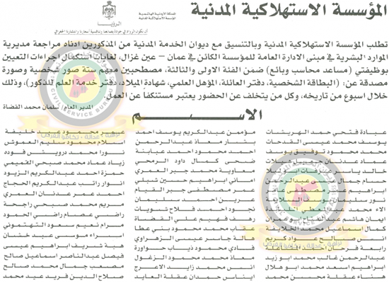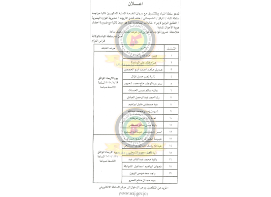 نيروز الاخبارية :- يدعو ديوان الخدمة المدنية بالتعاون مع مختلف الوزارات والمؤسسات الحكومية، التالية اسماؤهم لاجراء المقابلات الشخصية وعقد الامتحان التنافسي لغايات التعيين.