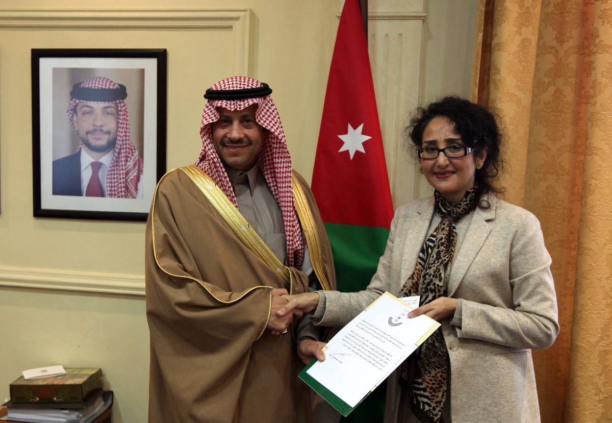 تسلم امين عام وزارة الخارجية وشؤون المغتربين سجى المجالي اليوم الخميس، نسخة من اوراق اعتماد السفير السعودي الجديد نايف بن بندر السديري .