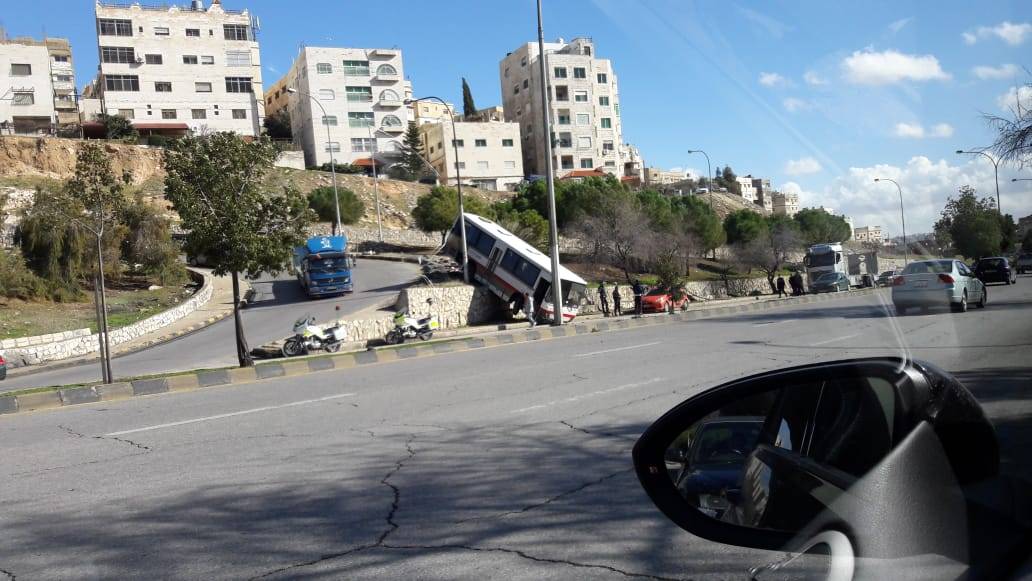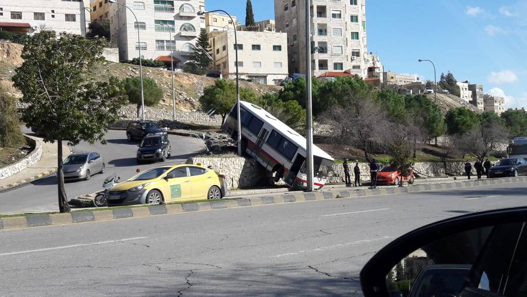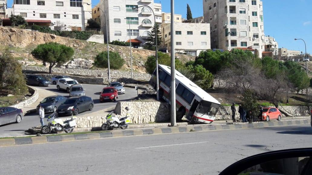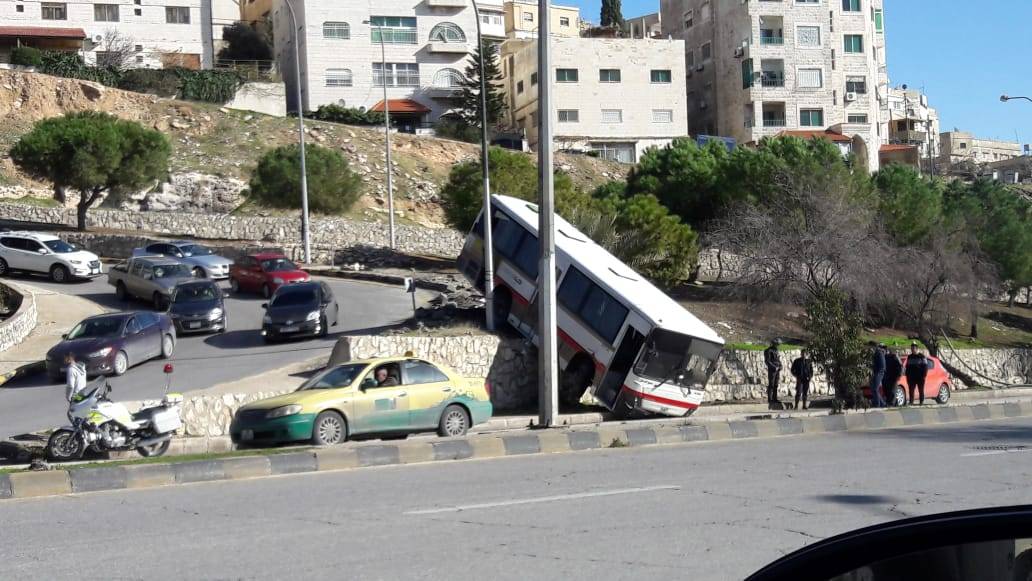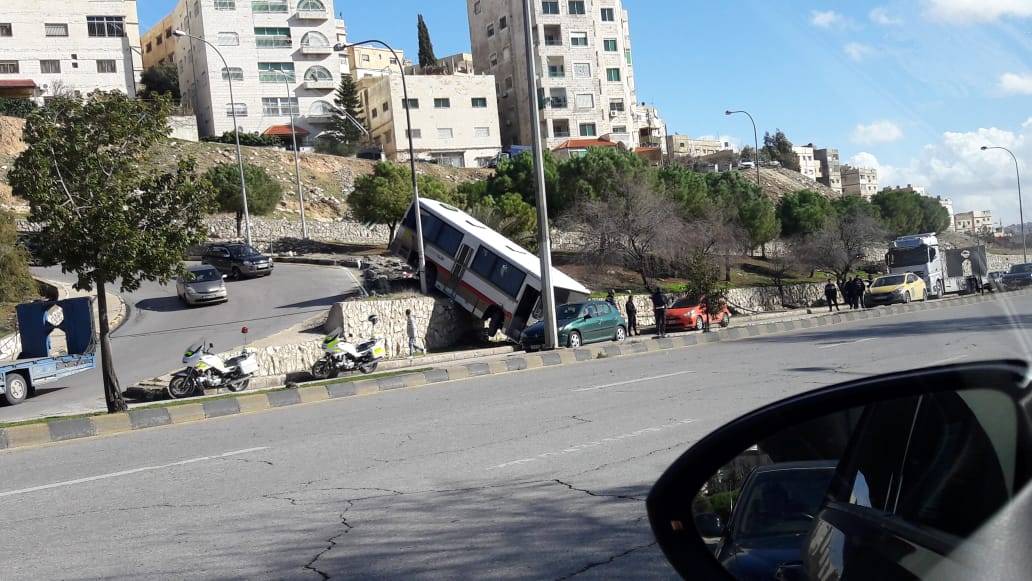 حادث تدهور باص مادبا قرب مجمع الشمال... فيديو وصور