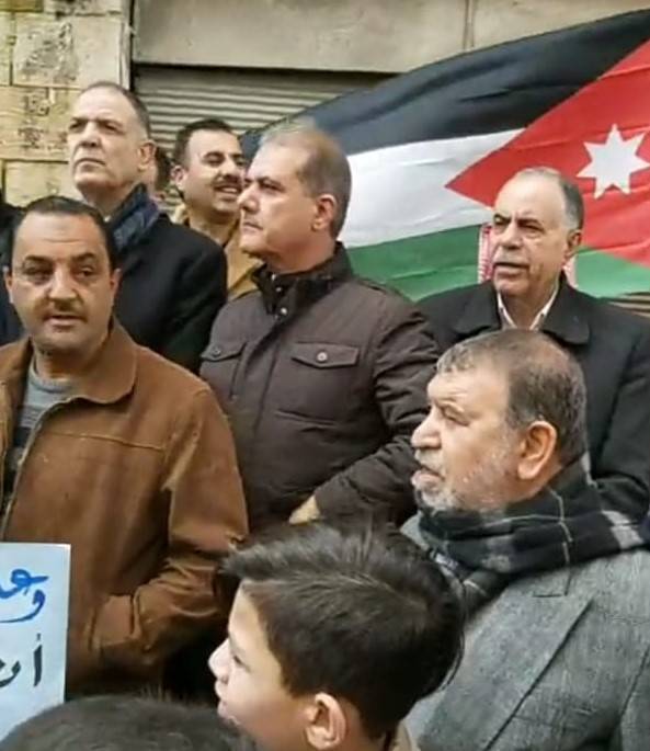 واكد المتحدثون من الفعاليات الشعبية على اهميه دعم الموقف الأردني الرافض لكل الإجراءات التي أعلنها الرئيس الامريكي، ورفعت بالوقفه الاعلام الاردنيه