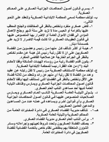 كما تطبق القوانين المفروضة على افراد القوات المسلحة، على افراد وضباط دائرة المخابرات العامة.