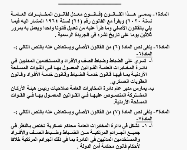 صدرت الارادة الملكية السامية ، بالموافقة على قانون معدل لقانون المخابرات العامة.