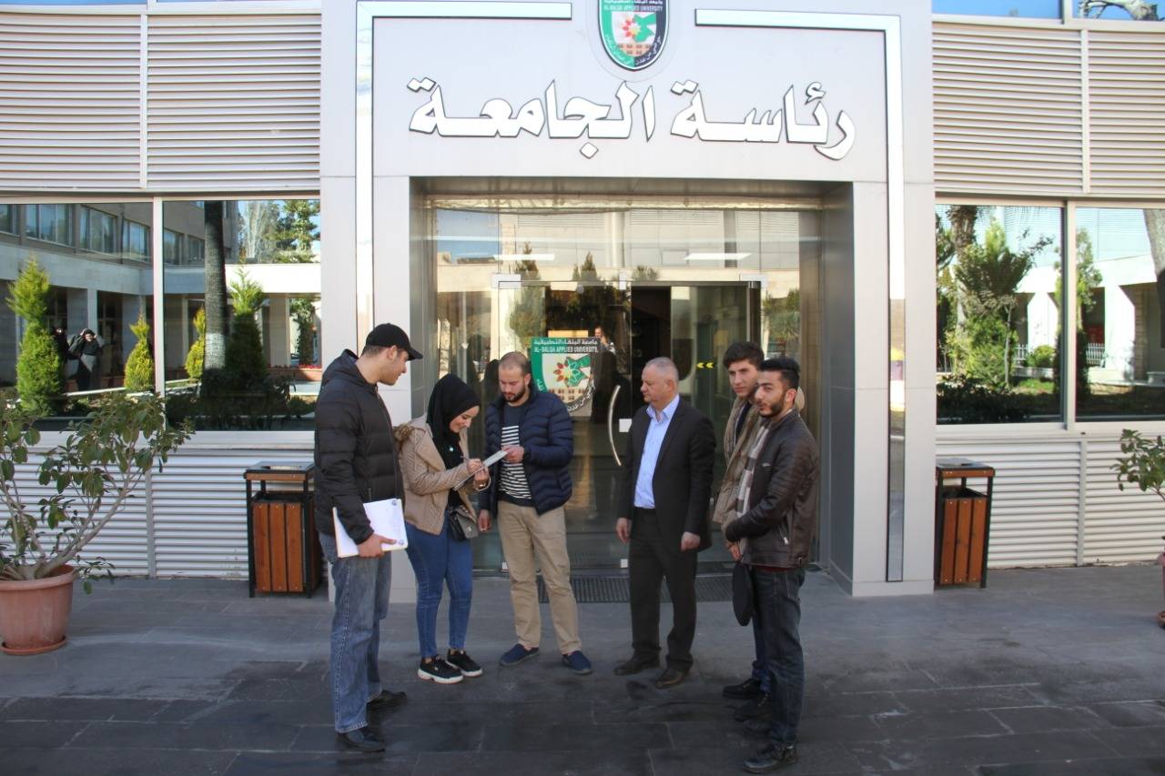 هذا وشكر الطلبة رئيس الجامعة على دعمه اللامحدود للأفكار ومبادرات الطلبة التي تنطلق من حسهم الوطني والتفافهم حول القيادة الهاشمية .