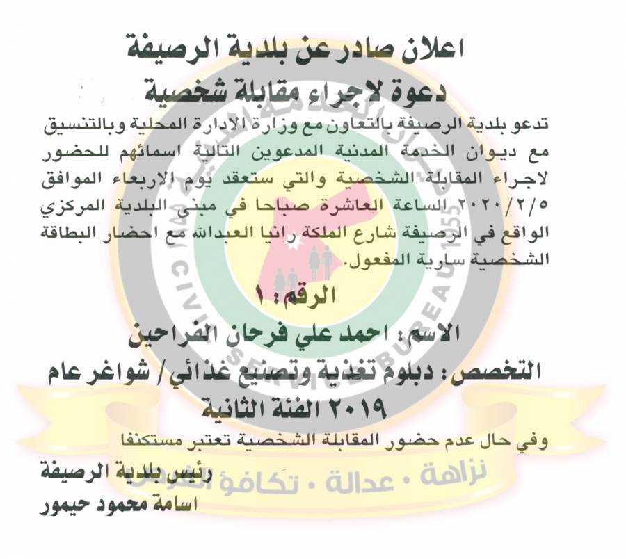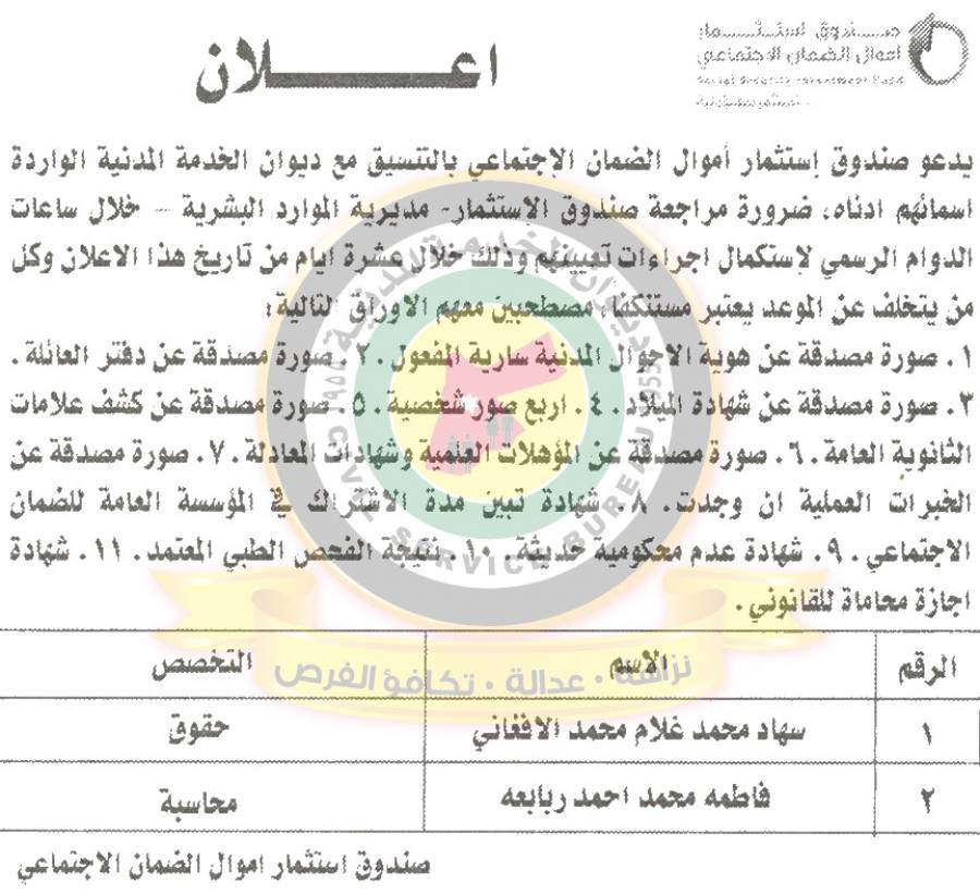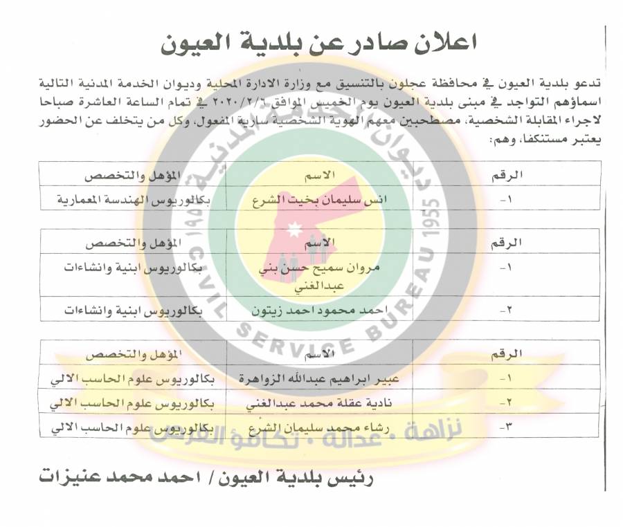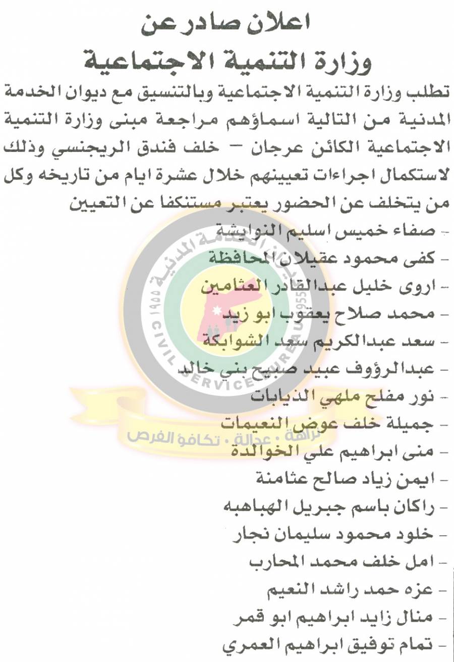 التالية اسماؤهم لاجراء المقابلات الشخصية وعقد الامتحان التنافسي لغايات