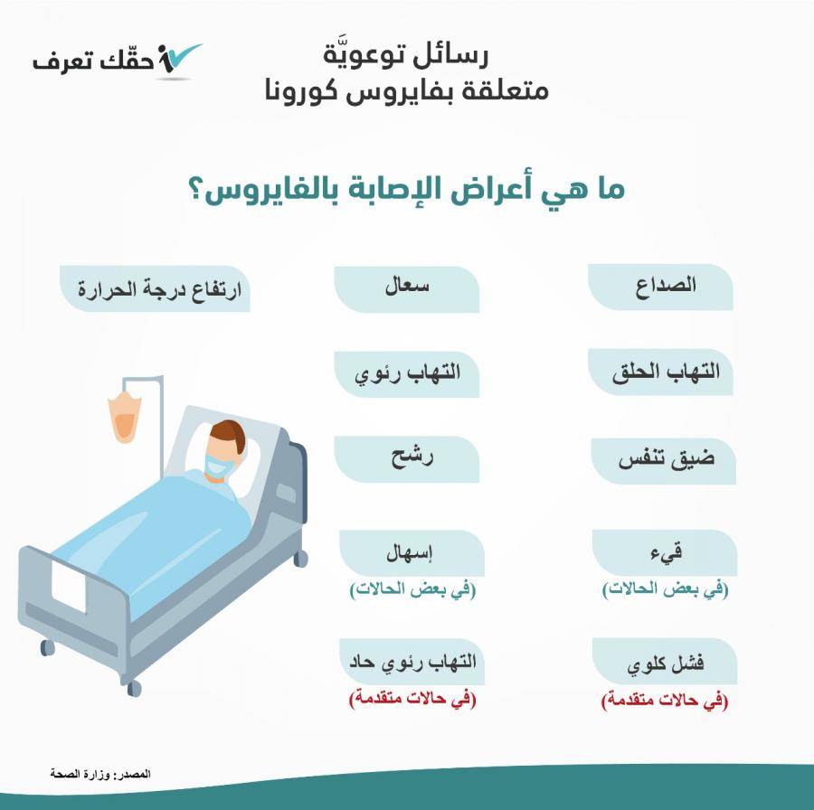 وأوضحت الوزارة أنّ من أعراض كورونا هي: الصداع، التهاب الحلق، ضيق التنفس، داعية إلى تجنب مخالطة الأشخاص المصابين بأي عدوى تنفسية.