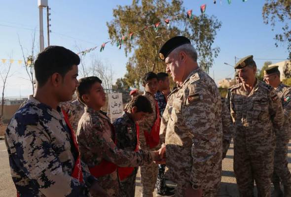 وكان في استقباله لدى وصوله مدير التربية والتعليم والثقافة العسكرية، وحضر اللواء الركن الحنيطي الطابور الصباحي في المدرسة، والتي تقدم الخدمات التربوية والتعليمية لما يزيد عن 550 طالب من ابناء المنطقة.