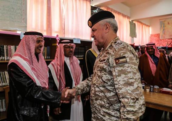 استكمالاً للجولات التفقدية التي يقوم بها رئيس هيئة الأركان المشتركة اللواء الركن يوسف أحمد الحنيطي لعدد من الوحدات والتشكيلات العسكرية في محافظات الجنوب زار اليوم الأربعاء، يرافقه عدد من كبار ضباط القوات المسلحة, مدرسة الحسين الثانوية للبنين التابعة لمدارس التربية والتعليم والثقافة العسكرية في منطقة القويرة.