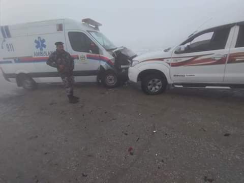 حادث سير مجموعة من المركبات في منطقة القادسية محافظه الطفيلة بسبب الأحوال الجوية السائدة...