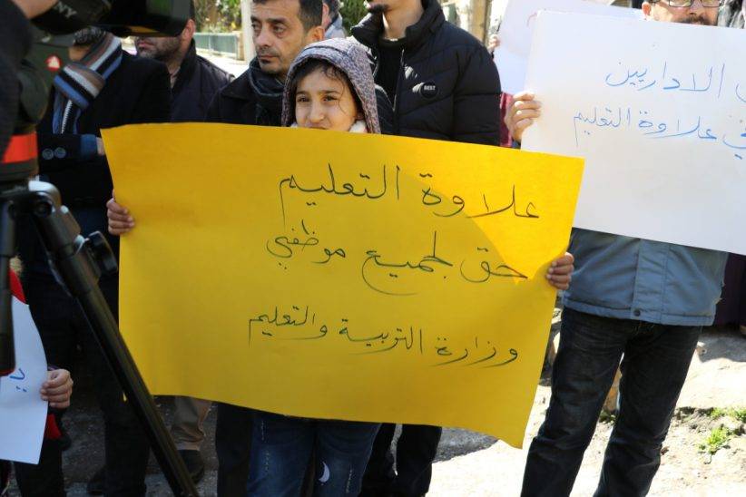 نيروز الإخبارية : نفذ عدد من الإداريين العاملين في وزارة التربية والتعليم من الفئة الأولى والثانية، الأربعاء، وقفة احتجاجية أمام مبنى الوزارة للمطالبة بمنحهم علاوة التعليم.