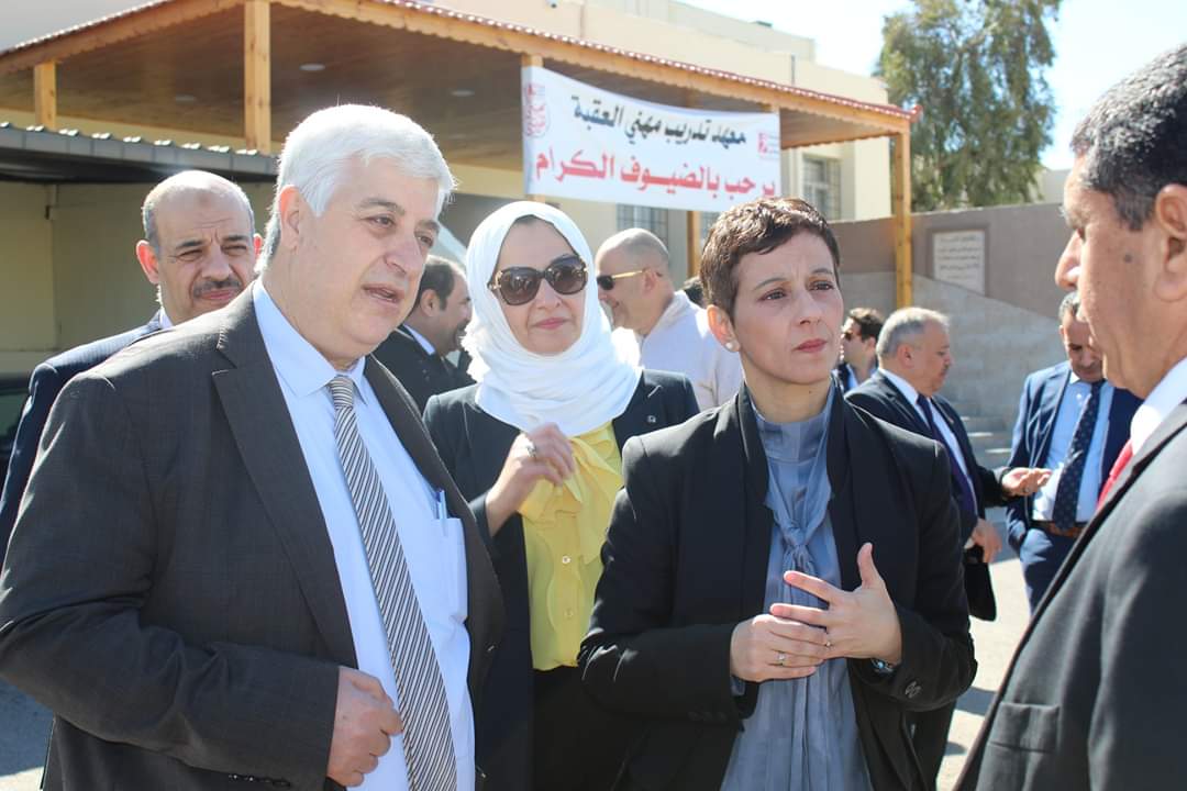 استقبل اليوم الخميس الموافق 13/02/2020 مديرعام مؤسسة التدريب المهني المهندس زياد عبيدات  و رئيس هيئة تنمية وتطوير المهارات المهنية والتقنية الدكتور قيس السفاسفة  سفيرة الجمهورية الألمانية والاتحاد الأوروبي بريجيتا بيفكر إيبرلي والوفد المرافق ، وذلك في معهد التدريب المهني العقبة