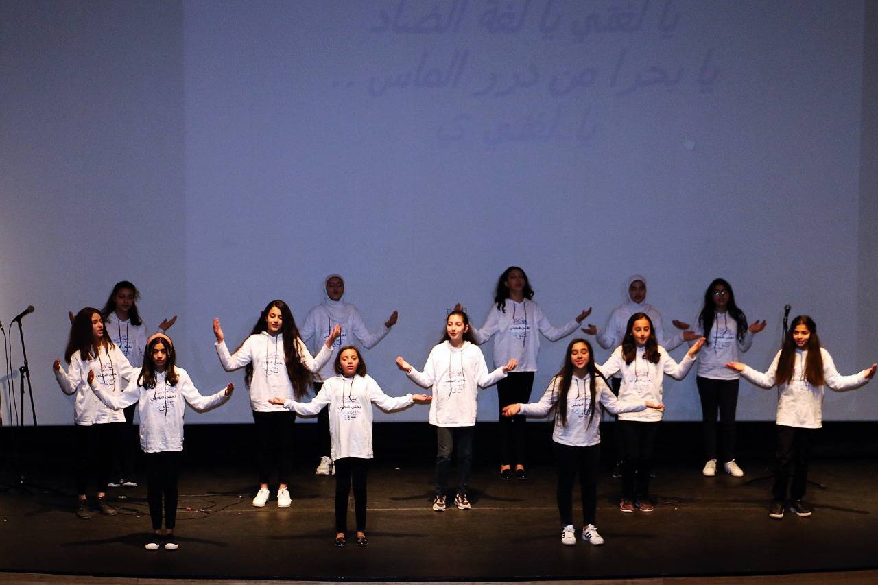 و اشتمل الحفل على عرض تقديمي عن انجازات مدرسة بنت عدي وقصيدة بعنوان بريق الضاد ، ونشرة أخبار نحوية ، ومناظرة بين القلب والعقل ، ونشيد لغتي يا لغة الضاد ، ومشهد حواري ومختارات شعرية وموشح أندلسي وقصيدة صفير البلبل .