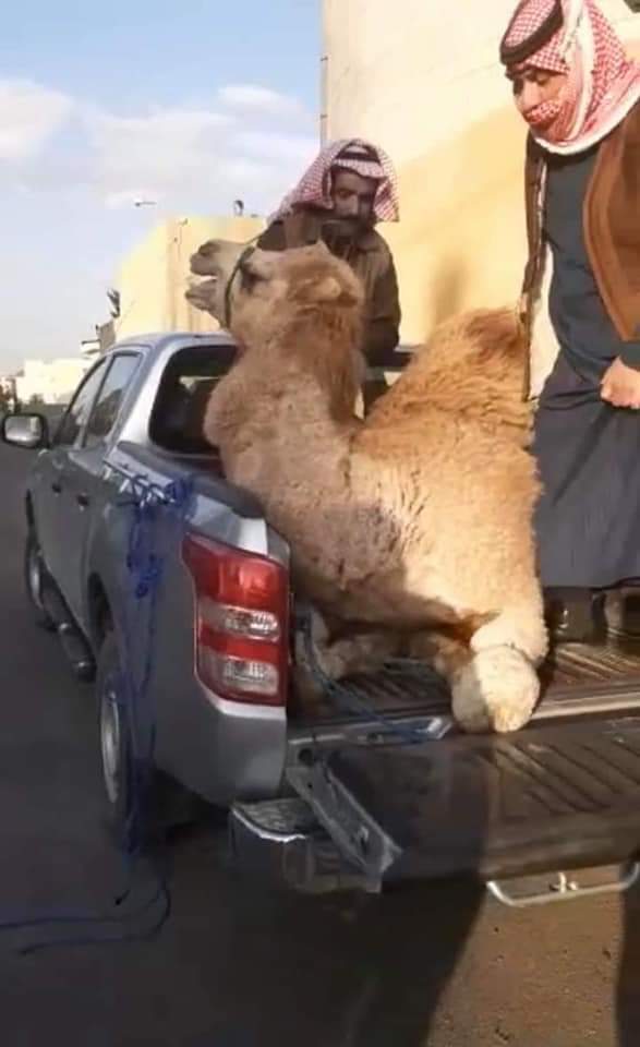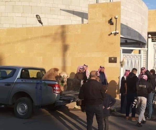 نحر أردنيون جمالا على طريق المطار لدى مرور موكب جلالة الملك عبدالله الثاني وضيف المملكة أمير دولة قطر الشيخ تميم بن حمد.