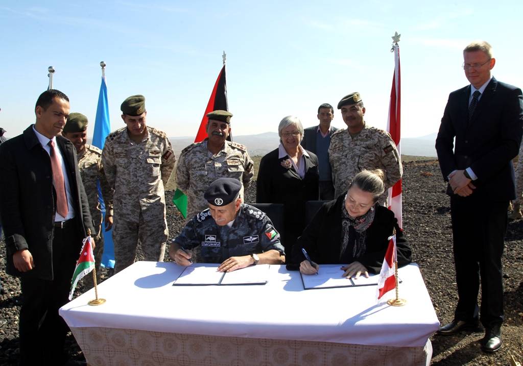 ووقع مساعد رئيس هيئة الأركان المشتركة للتخطيط والتنظيم والموارد الدفاعية الاتفاقية الخاصة بمشروع  الأبراج الحدودية مع رئيس بعثة منظمة الهجرة الدولية (IOM) تجما كيرت، والتي تهدف إلى تعزيز قدرات وإمكانيات المؤسسات الأردنية والمنظمات الإنسانية الدولية للعمل على الحدود الشمالية والشرقية للمملكة.
