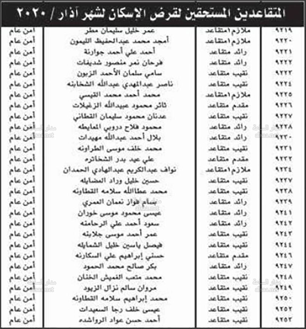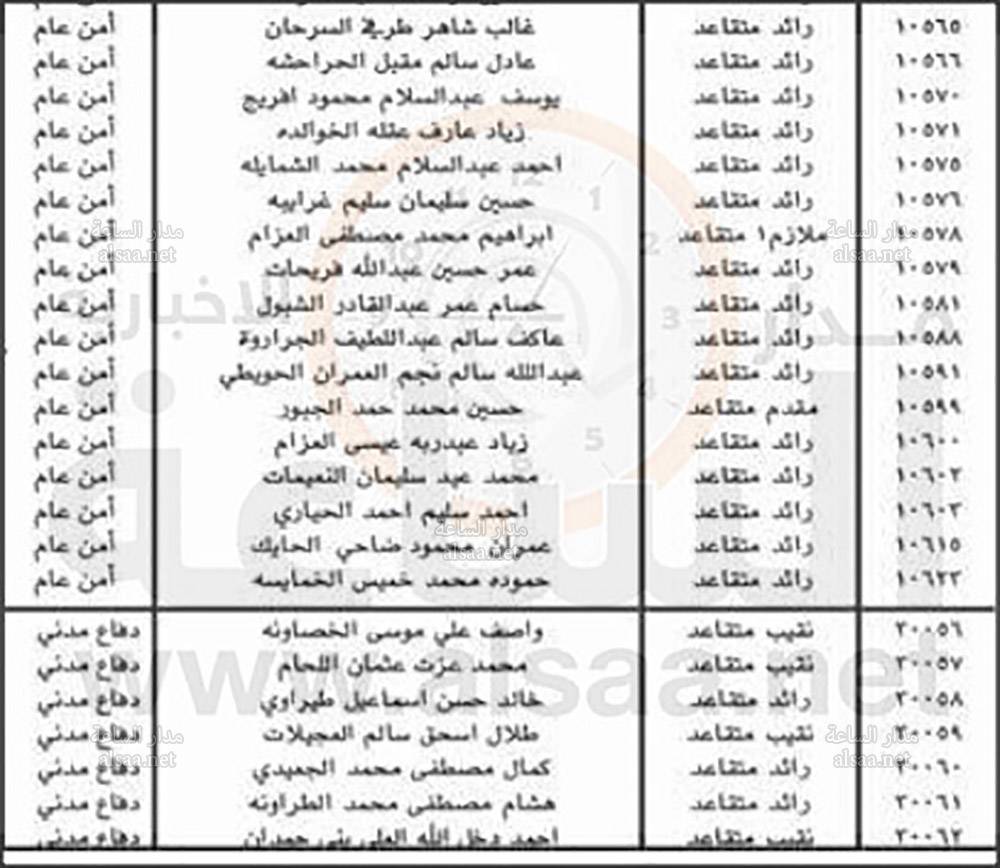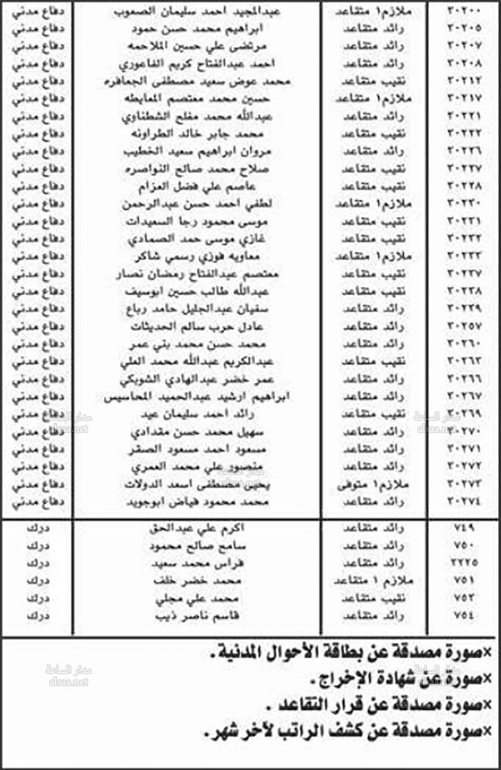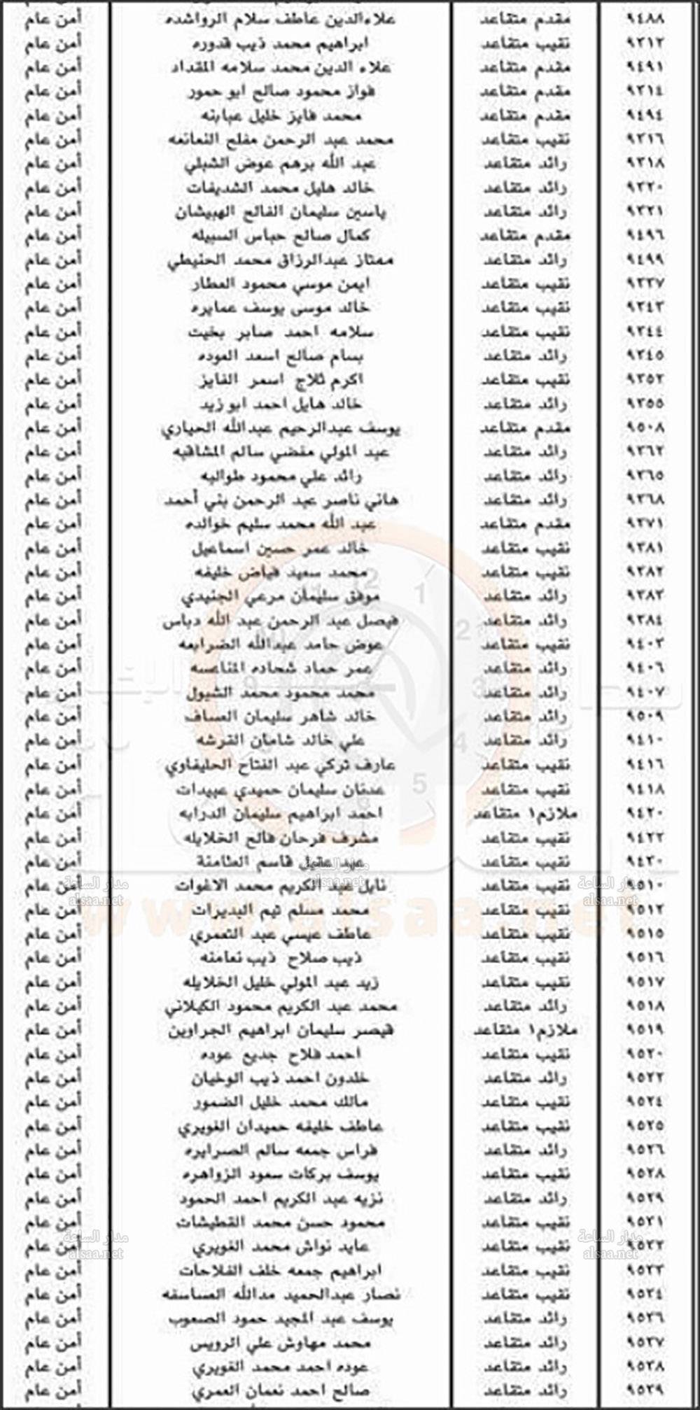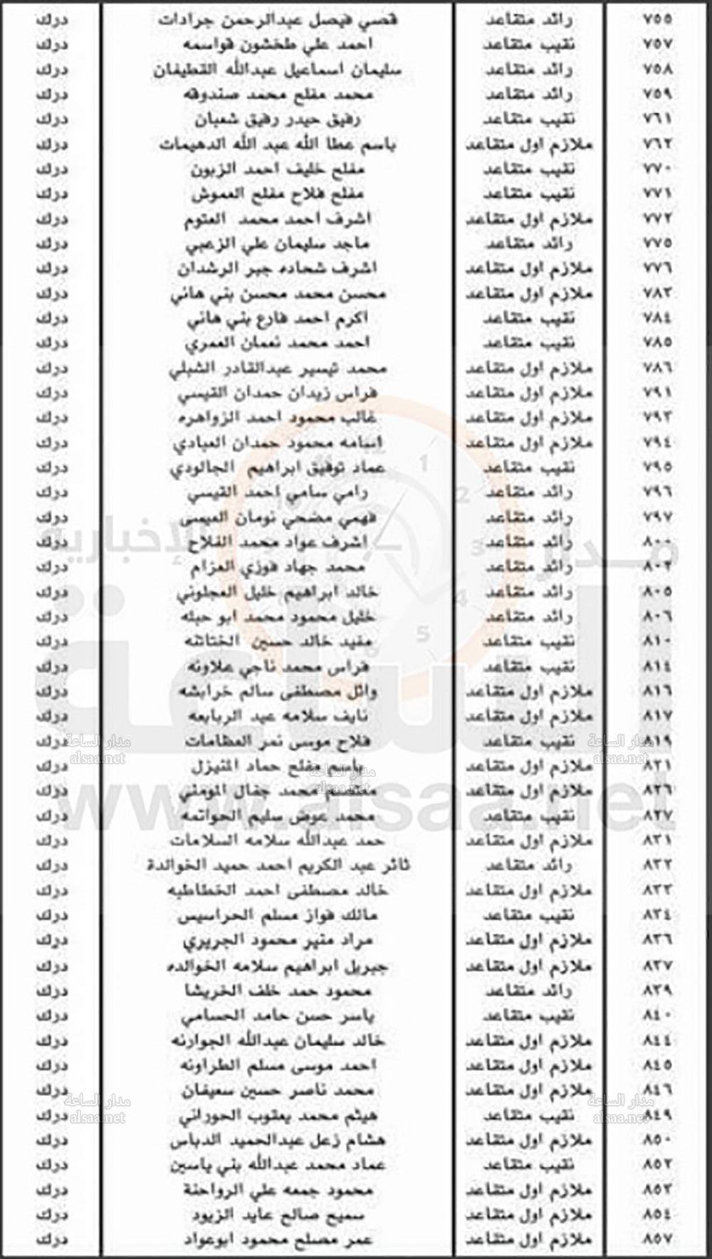 : بالاسماء... الأمن العام يعلن أسماء 600 ضابط متقاعد "أمن عام ودرك دفاع مدني " شملتهم المكرمة الملكية التالية :