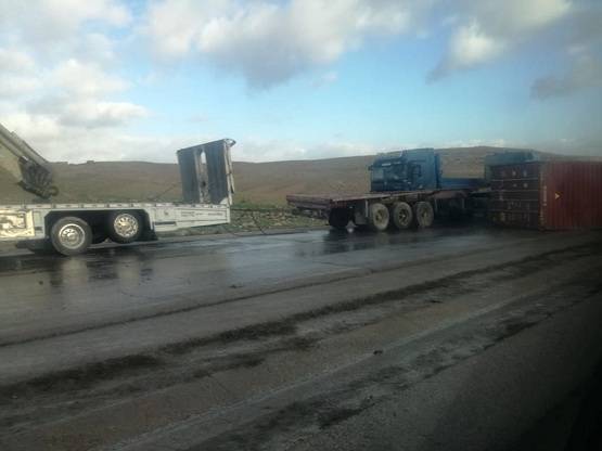 وبين المصدر ان الفرق المختصة تتعامل مع حادث تدهور تريلا وسقوط الحاوية التي كانت على ظهرها في منتصف الطريق على طريق المفرق باتجاه الزرقاء بعد مثلث عرنوس.
