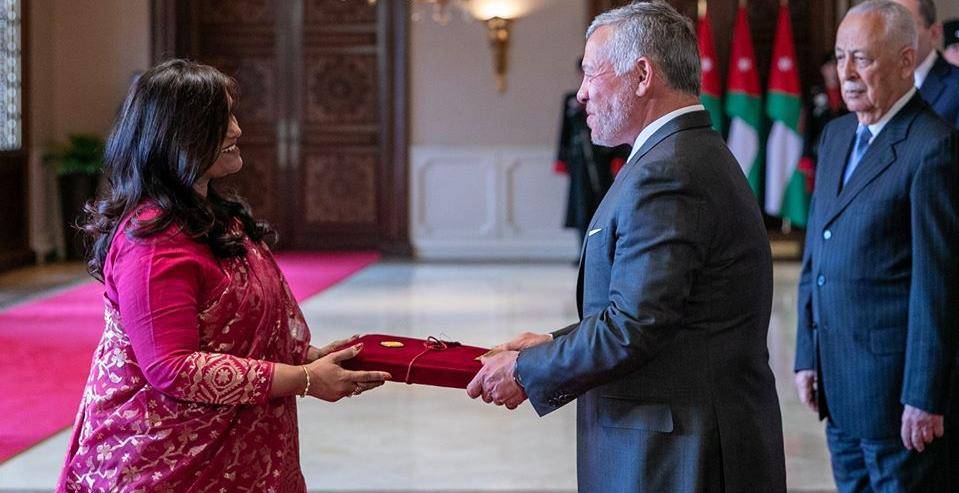 فقد تقبل جلالة الملك أوراق اعتماد سفراء كل من المملكة العربية السعودية والجمهورية التركية وجمهورية بنغلادش الشعبية وجمهورية أرمينيا وجمهورية كوبا وجمهورية أستونيا وجمهورية البيرو.