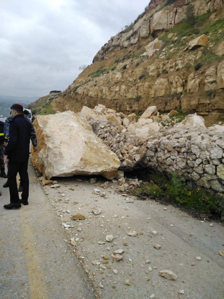 يشار الى ان المنطقة المحاذية لجسم الطريق متحرجة فيما وقعت سلسلة من الانهيارات الجبلية في الطريق المؤدي الى الشارع الدولي من مدخل جرش الجنوبي