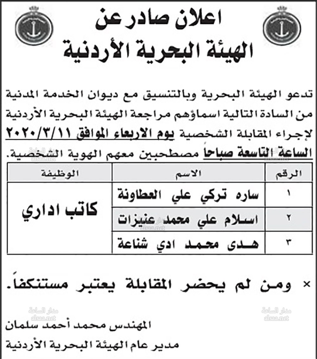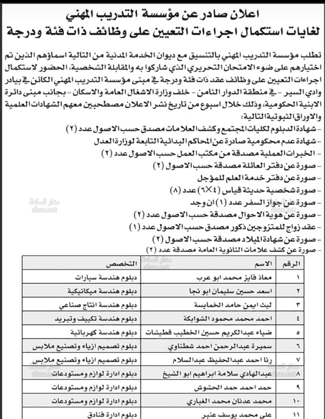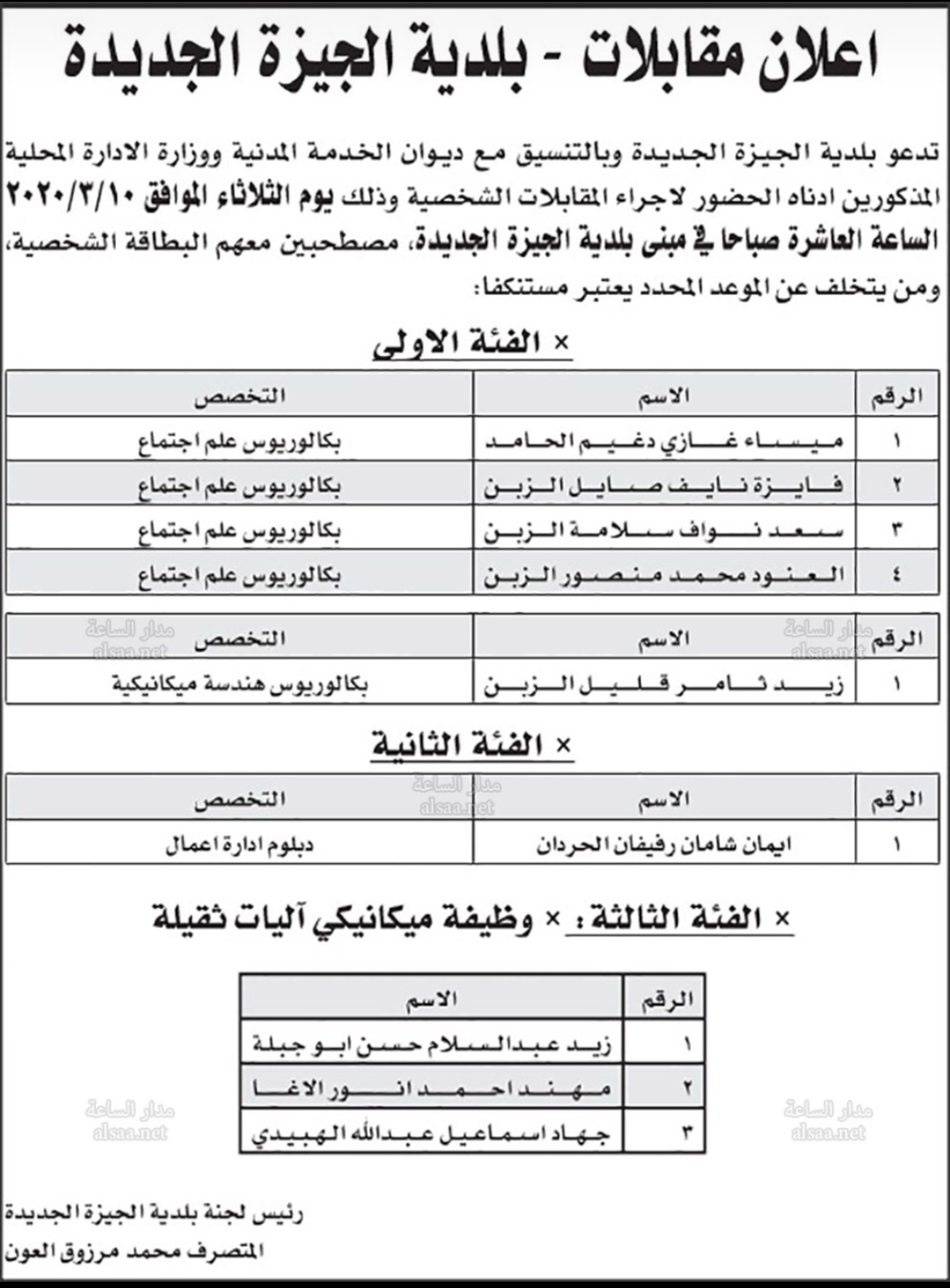 مدعوون للتعيين والمقابلات الشخصية "أسماء"
