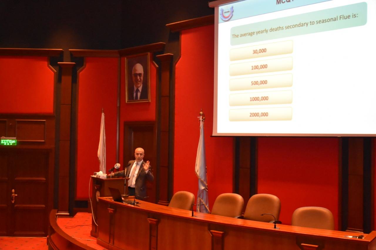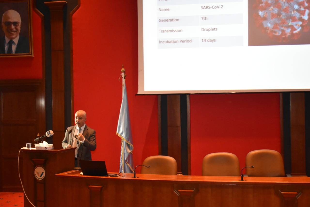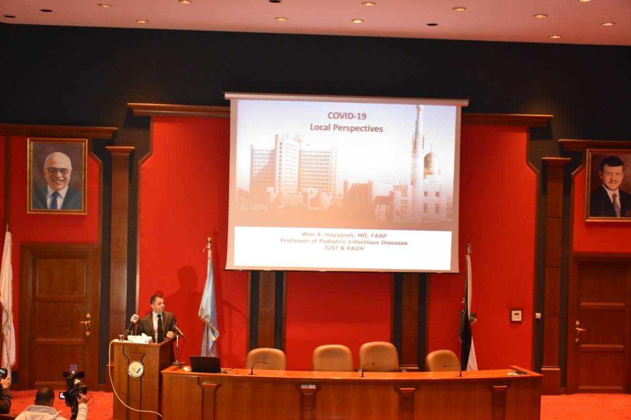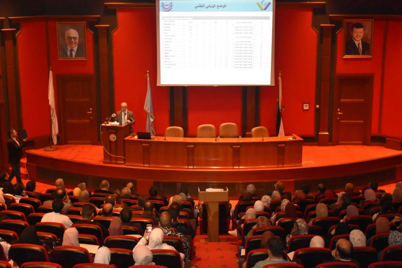 وتخلل الحملة محاضرة علمية قيمة عن مرض كورونا وطرق الوقاية منه وكيفية التعامل معه وعن استعدادات المستشفى والكادر الطبي لاستقبال الحالات المشتبه بإصابتها والإجراءات المتبعة في حالات العزل وجاهزية الغرف وكيفية تعقيمها, قدمها إستشاري أمراض الأطفال والأمراض المعدية البرفيسور وائل هياجنة رئيس اللجنة الوطنية الفنية الاستشارية للتطعيم رئيس اللجنة الفنية للمضادات الحيوية في المؤسسة العامة للغذاء والدواء الأردنية رئيس لجنة ضبط العدوى في مستشفى الملك المؤسس عبدالله الجامعي