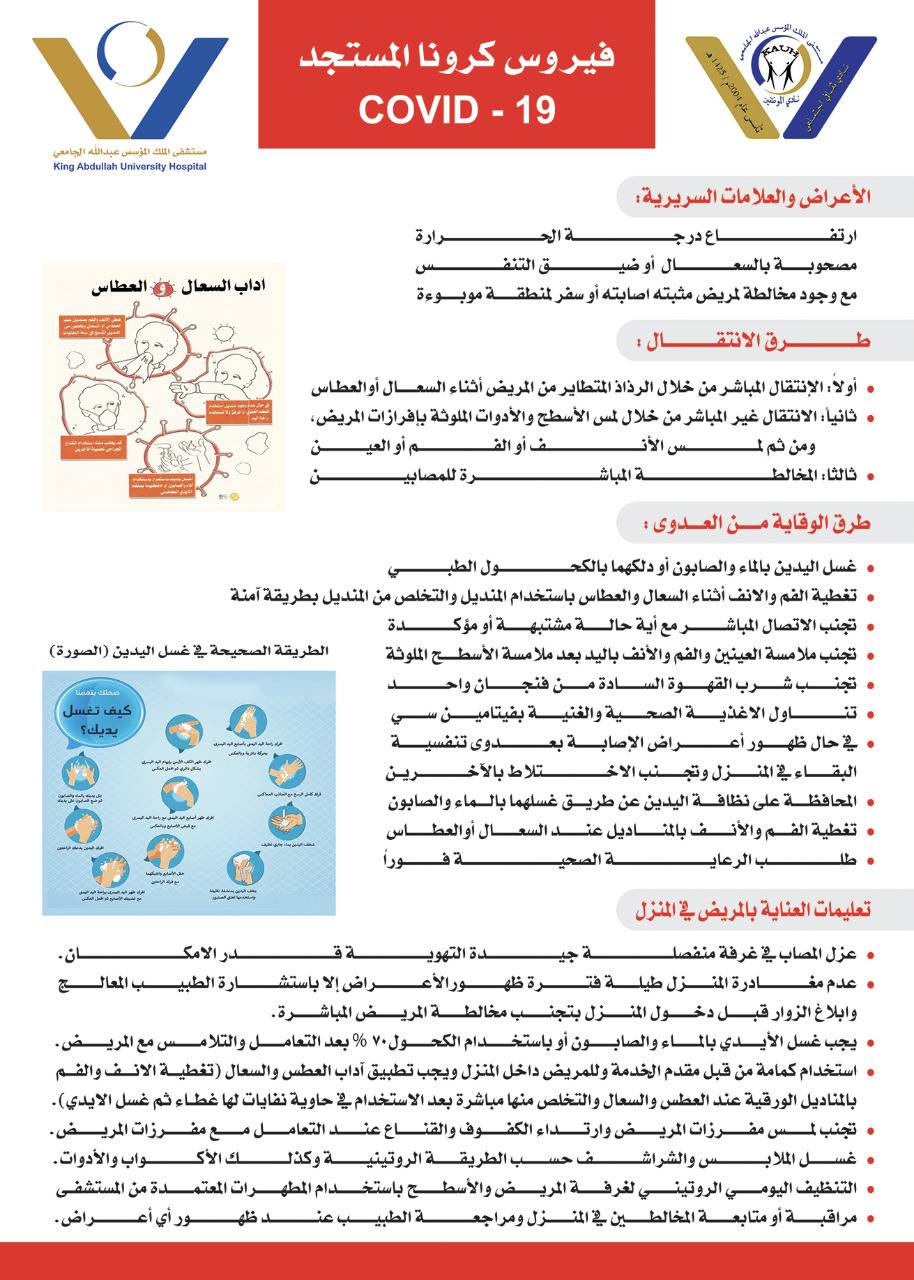 مستشفى الملك المؤسس عبدالله الجامعي يبدأ أعمال الحملة الوطنية للتوعية بمرض الكورونا