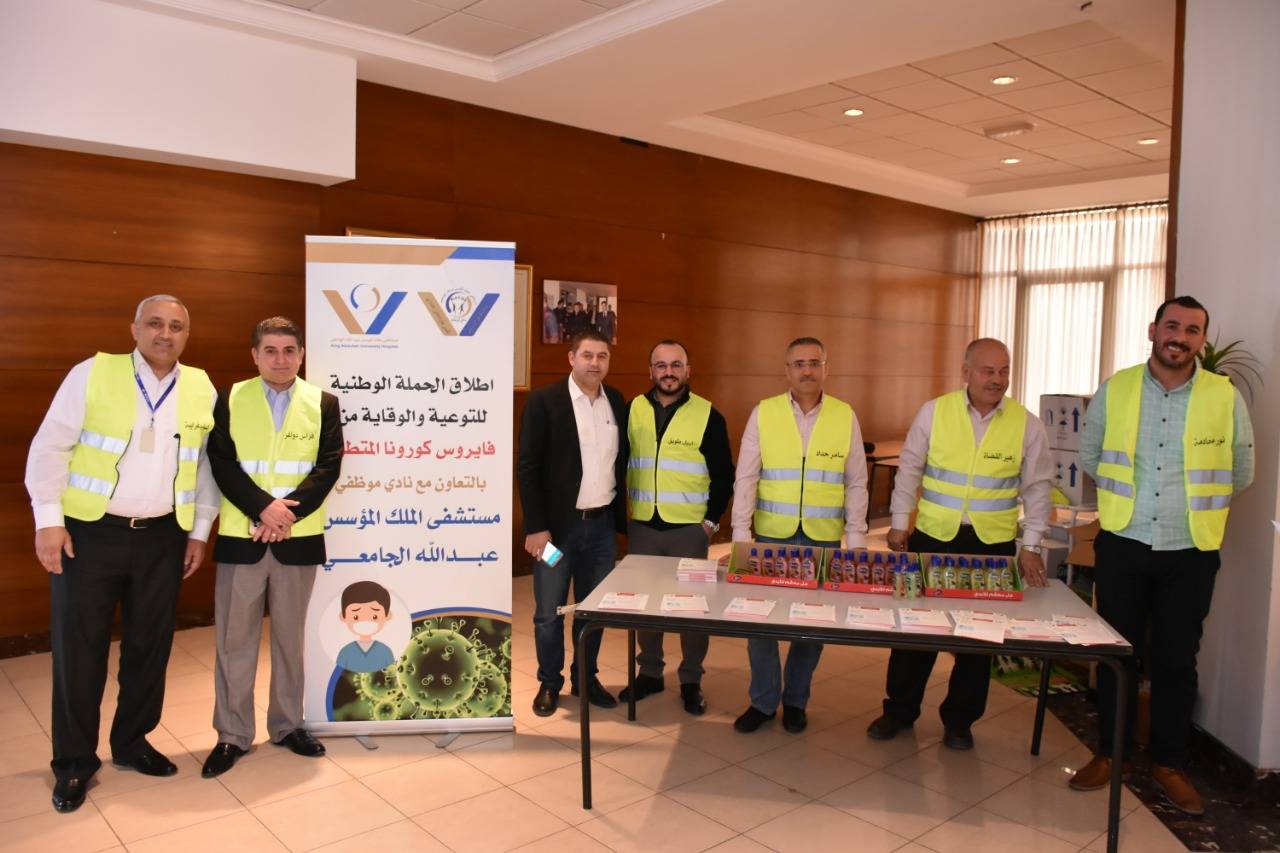 بدات في مستشفى الملك المؤسس عبدالله الجامعي امس أعمال الحملة الوطنية للتوعية بمرض الكورونا والتي تأتي بالتعاون مع نادي موظفي المستشفى