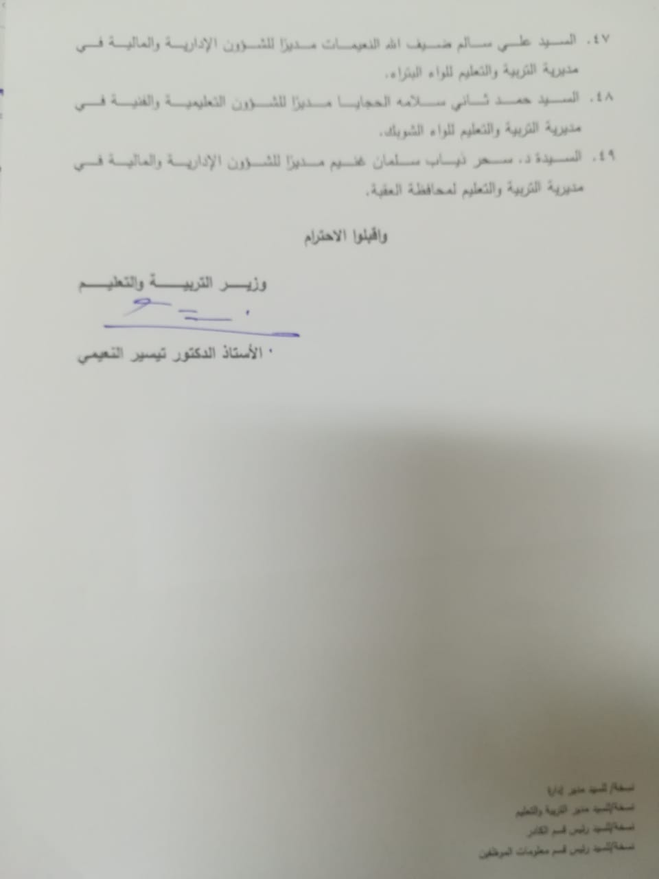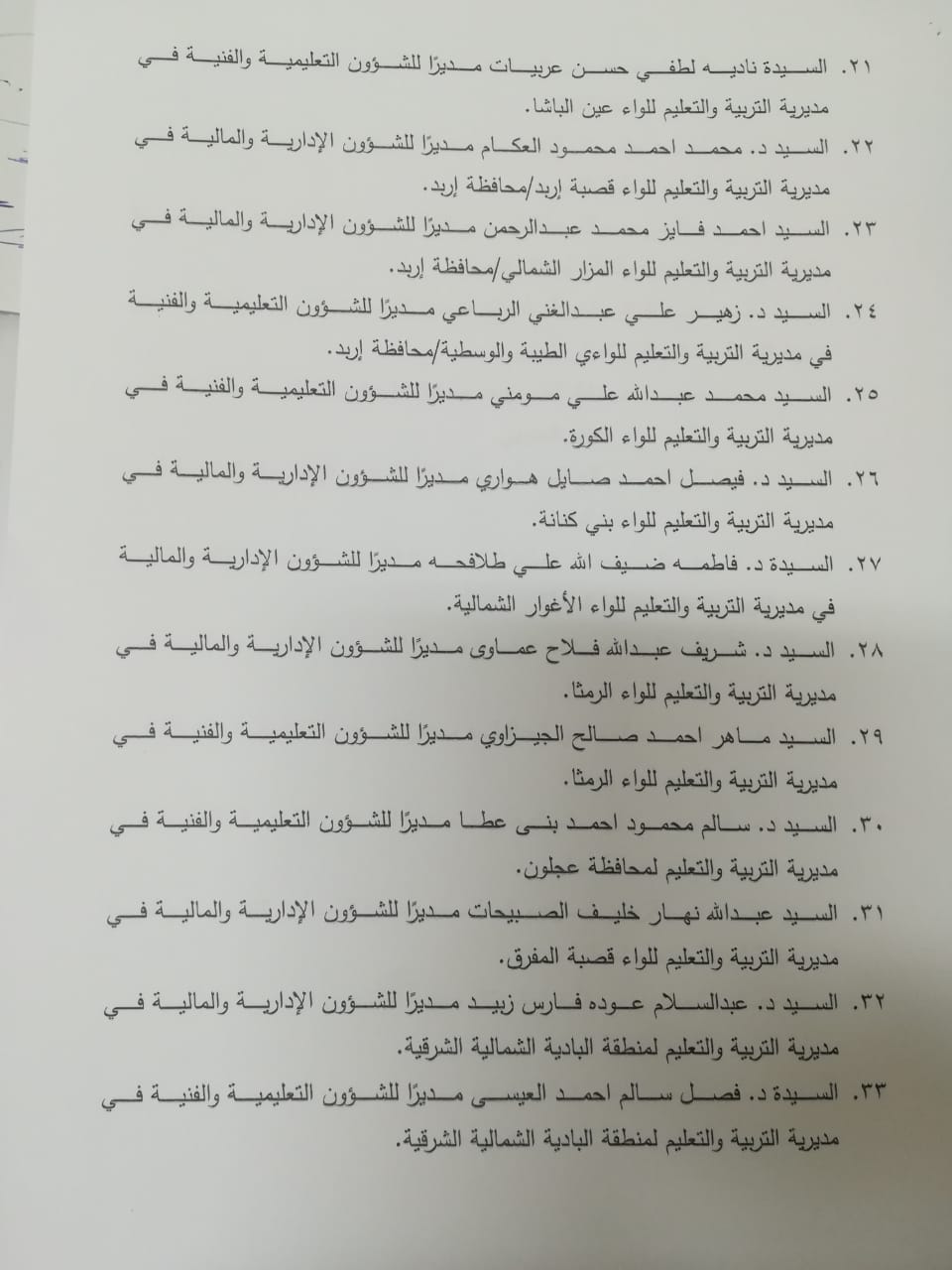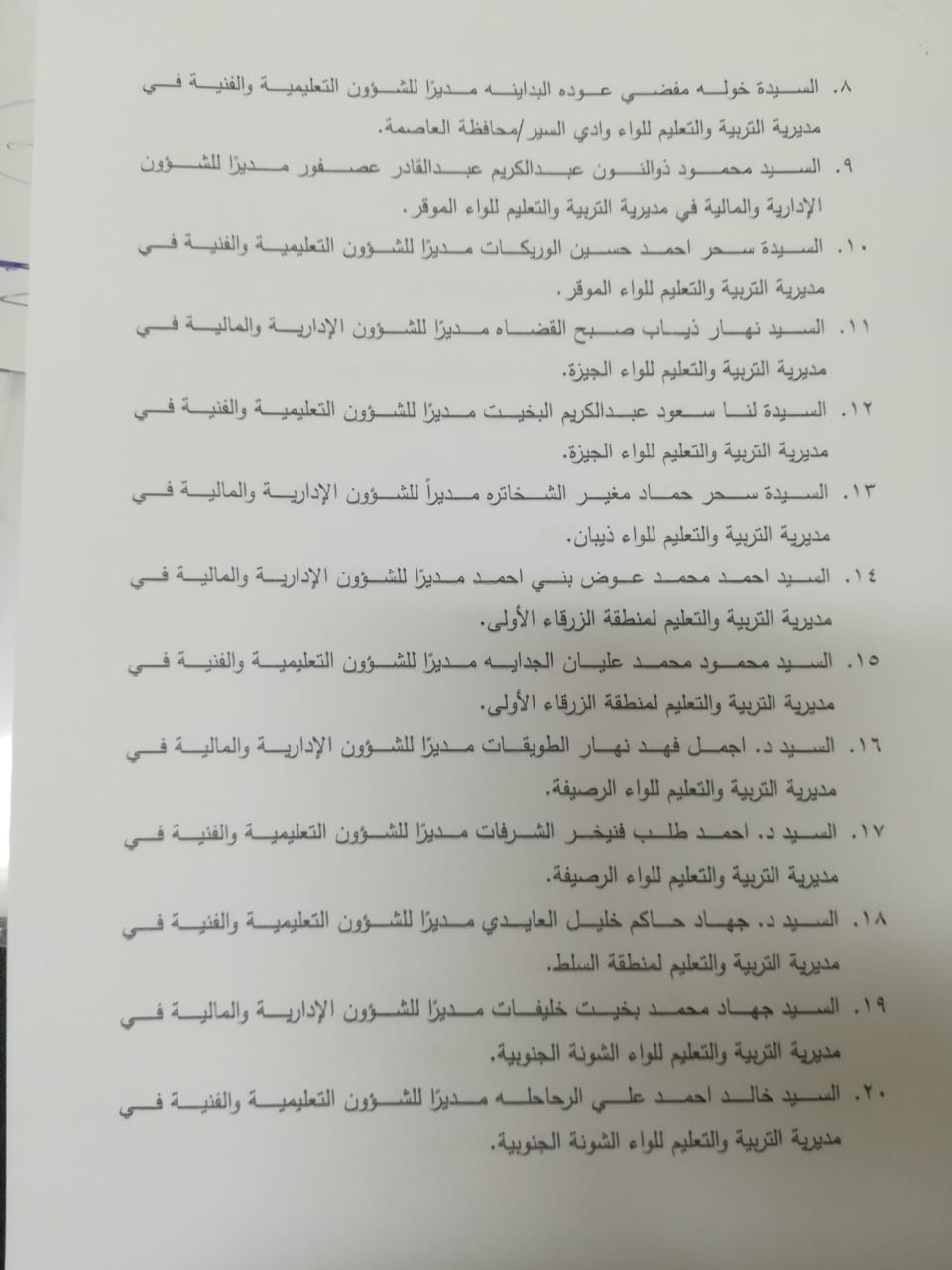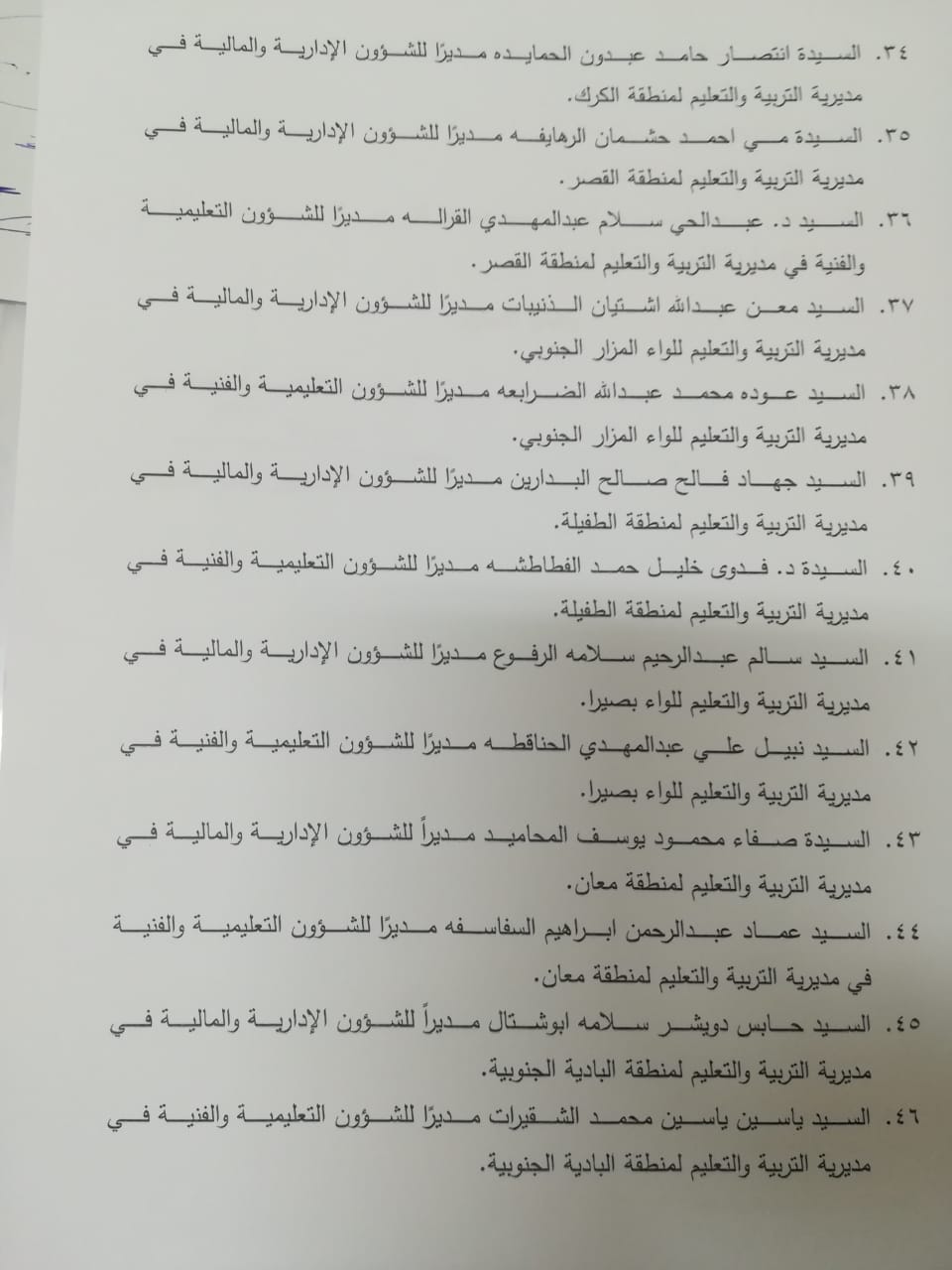 قرر وزير التربية والتعليم نقل عدد من موظفي الوزارة اعتبارا من تاريخه.