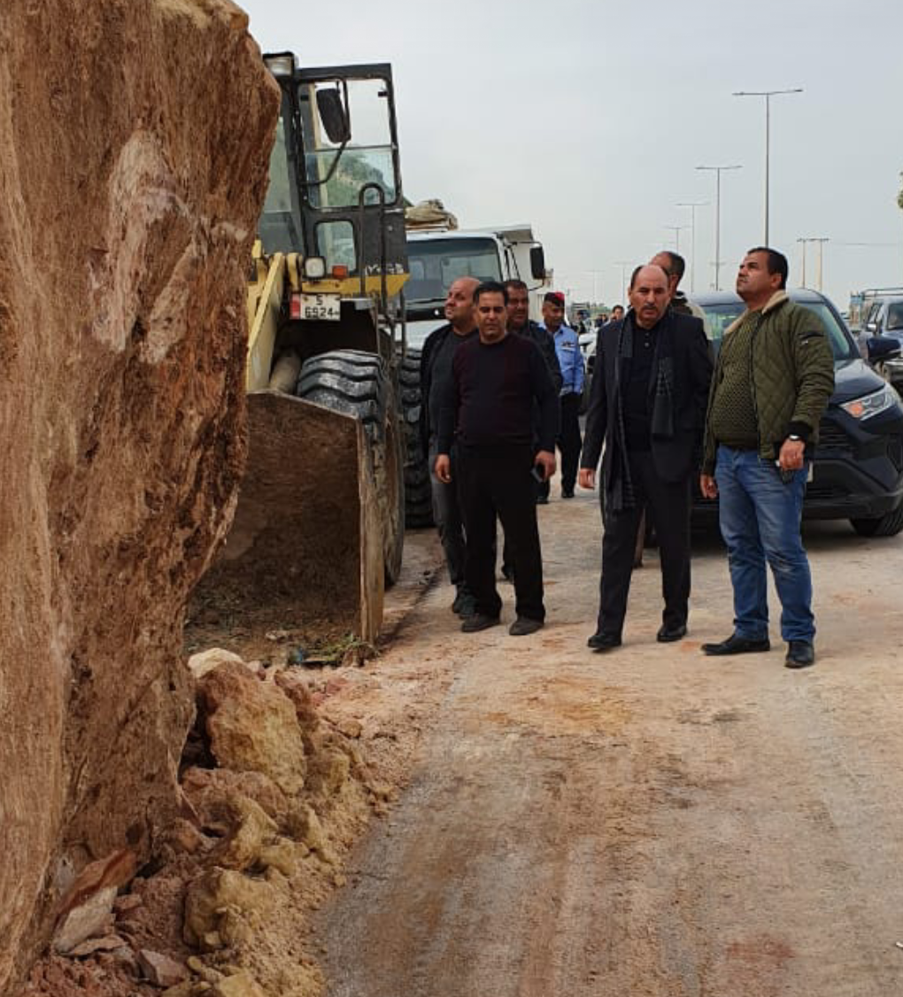 وتفقد وزير الأشغال العامة والإسكان المهندس فلاح العموش الموقع وقدم شكره لكوادر الوزارة الذي تعاملوا مع الانجراف الصخري بكل حرفية وقاموا بإعادة فتح الطريق أمام حركة في وقت قياسي