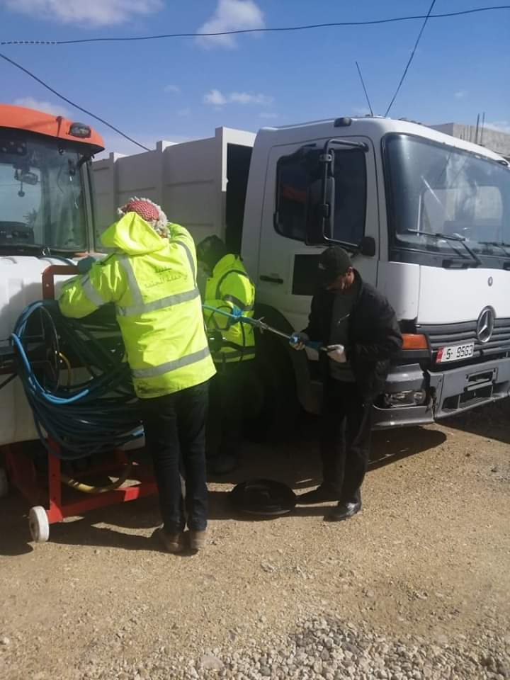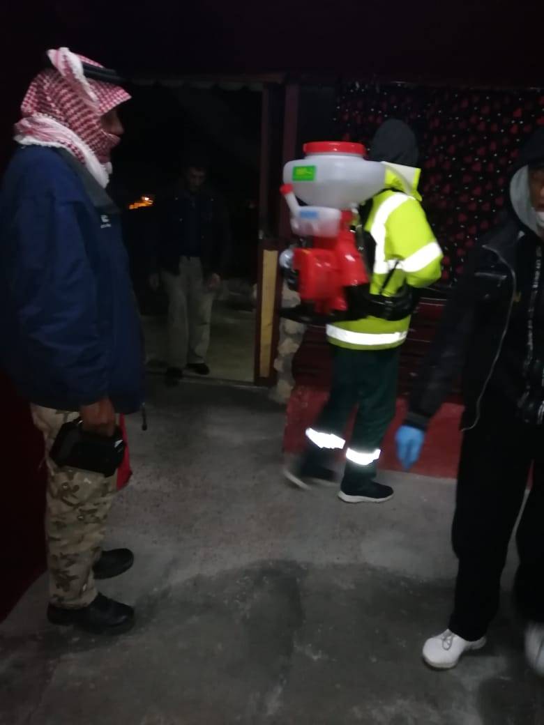 باشرت كوادر بلدية القادسية / محافظة الطفيله بحملة رش وتعقيم الشوارع والأسواق والفنادق بشكل مكتف للوقاية من فيروس كورونا المستجد