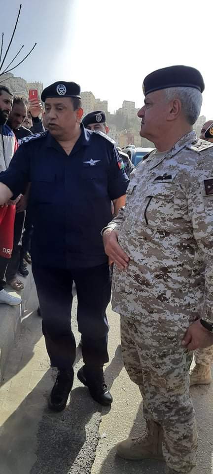 تفقد رئيس هيئة الأركان المشتركة اللواء الركن يوسف الحنيطي و مدير الأمن العام اللواء الركن حسين الحواتمة احوال المواطنين في منطقة وادي عبدون حي القيسية بعمان .