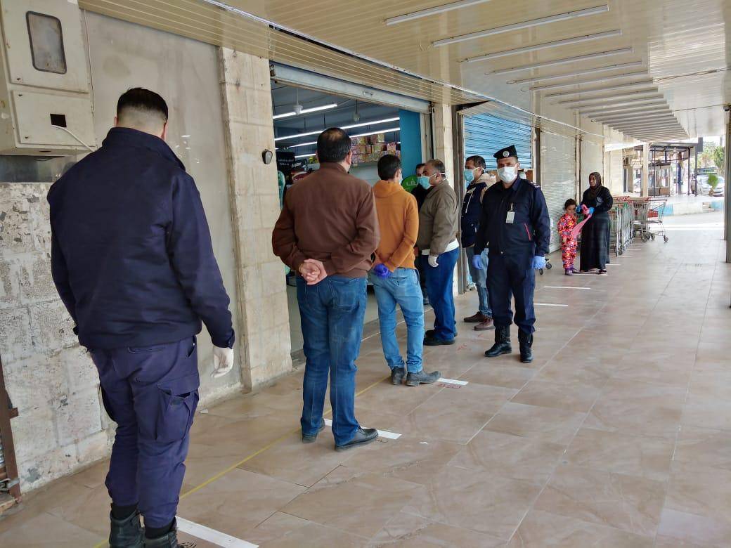واصلت الشرطة المجتمعية في مديرية الأمن العام، لليوم الثاني على التوالي، عملها في تنفيذ مبادرة "مسافة أمان"، الهادفة لتحفيز المواطنين على الالتزام بالإرشادات الصحية عند التسوق، وترك مسافات آمنة بين المتسوقين في المحال التجارية المصرح لها بالبيع.