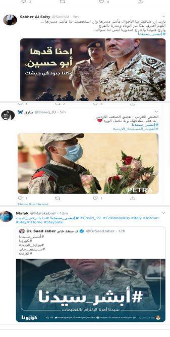 وأطلق وزير الصحة سعد جابر عبارة #ابشر_سيدنا يوم أمس في أثناء الإيجاز الصحفي، حيث أكد على اهتمام جلالة الملك ومتابعته للتفاصيل الدقيقة المتعلقة بجهد مكافحة كورونا.