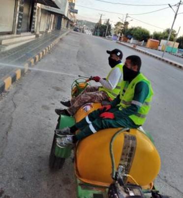 وبين أن آلية العمل تقوم على ثلاثة أسس أولها تكليف عمليات النظافة اليومية بالتخلص من النفايات وتعقيم المناطق والشوارع والأحياء ضمن جميع مناطق البلديات ومن ثم تقسيم العمل إلى فترتين صباحية تشمل الشوارع والأحياء السكنية ومسائية تشمل المناطق التجارية وذلك بغسيل الشوارع وأبواب المحلات وتعقيمها.