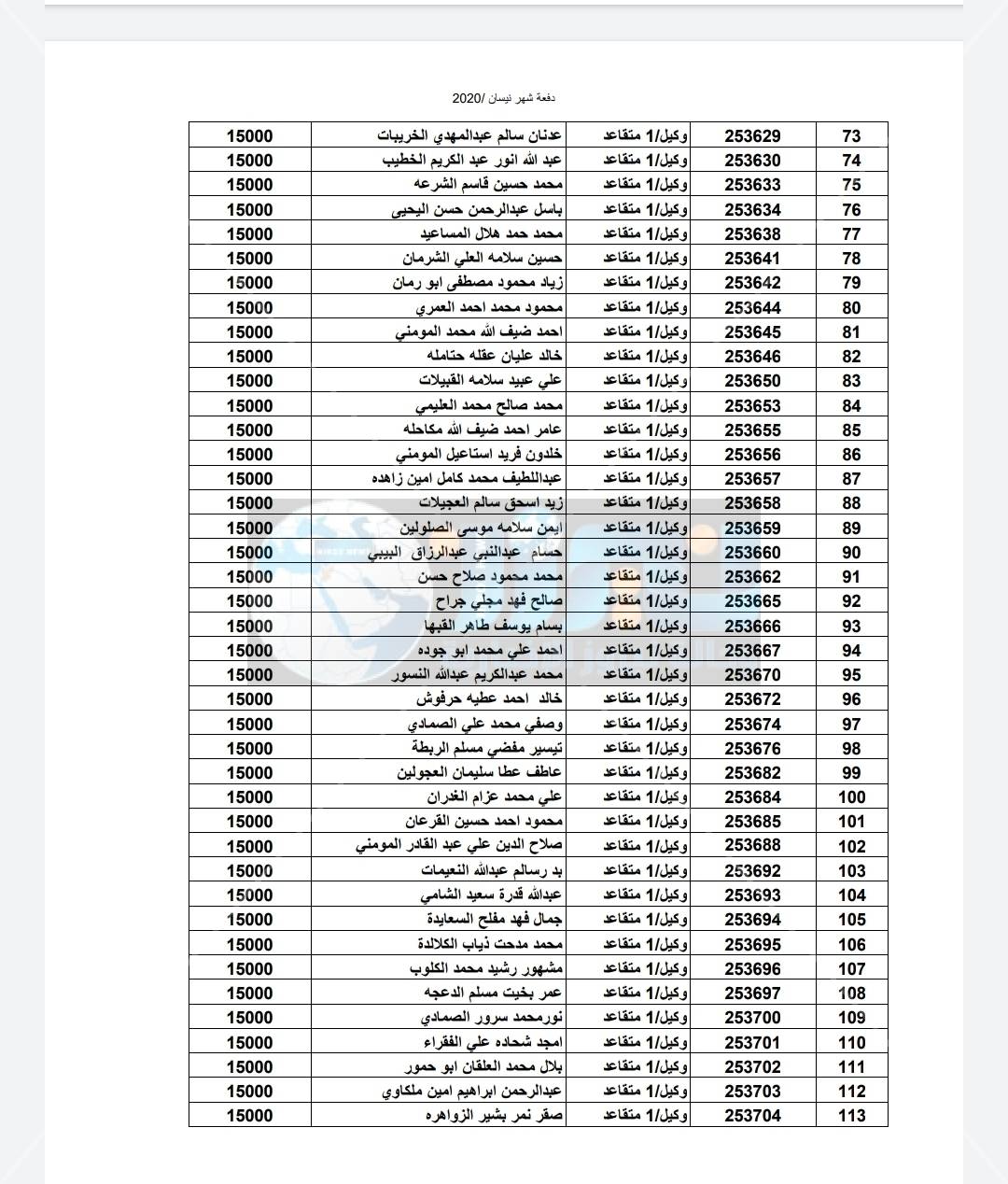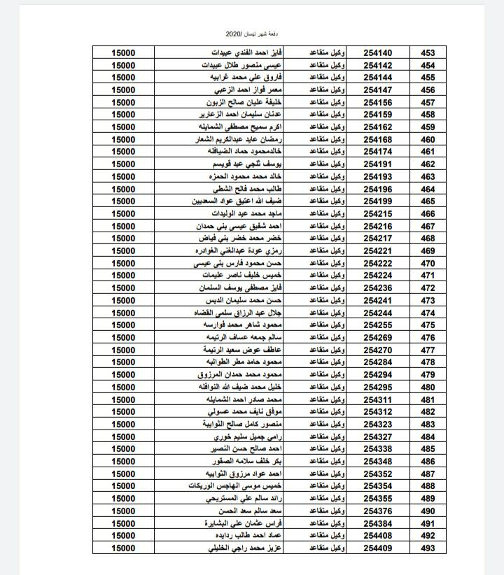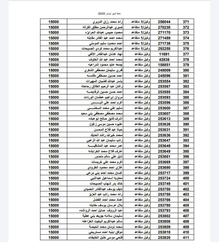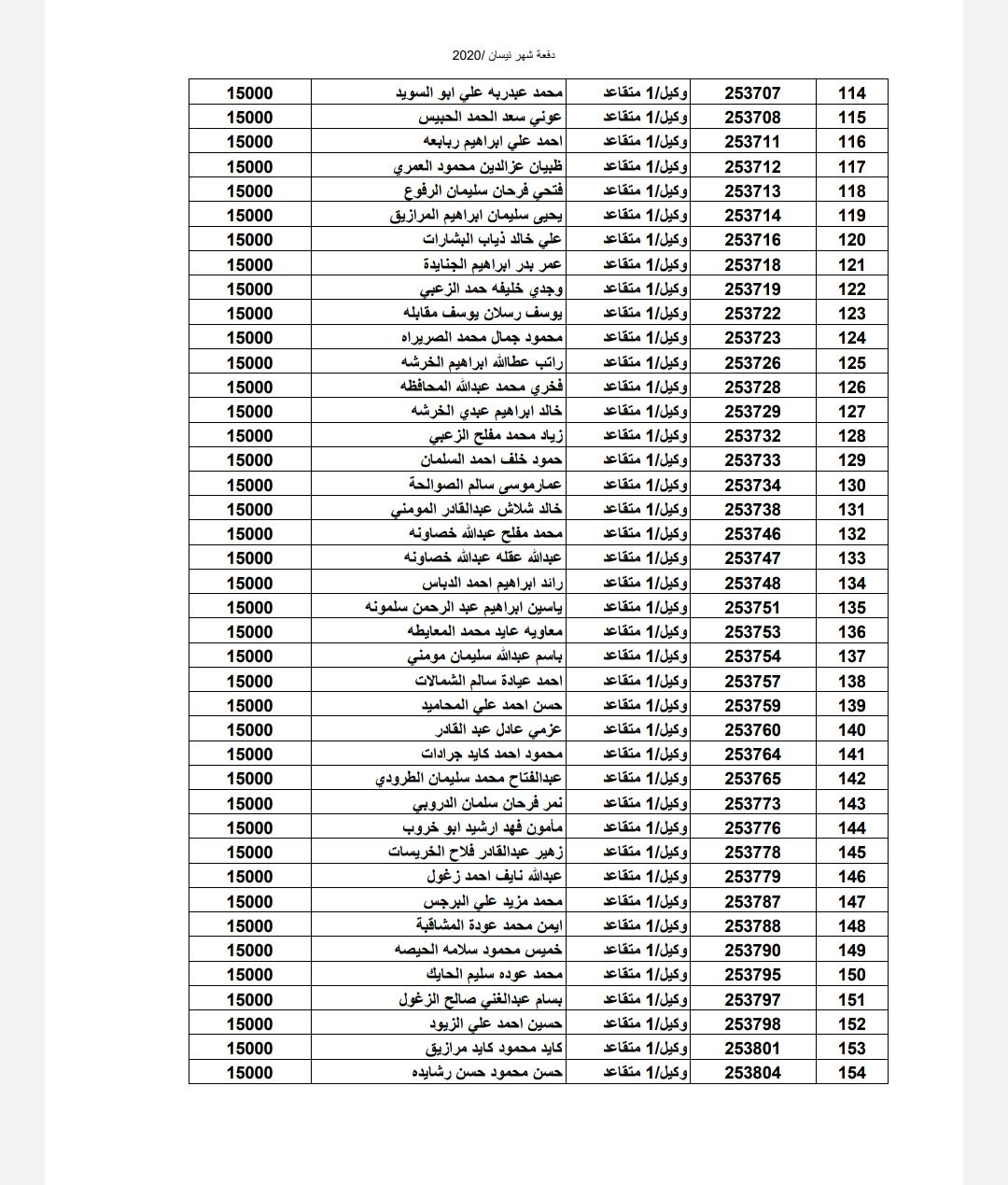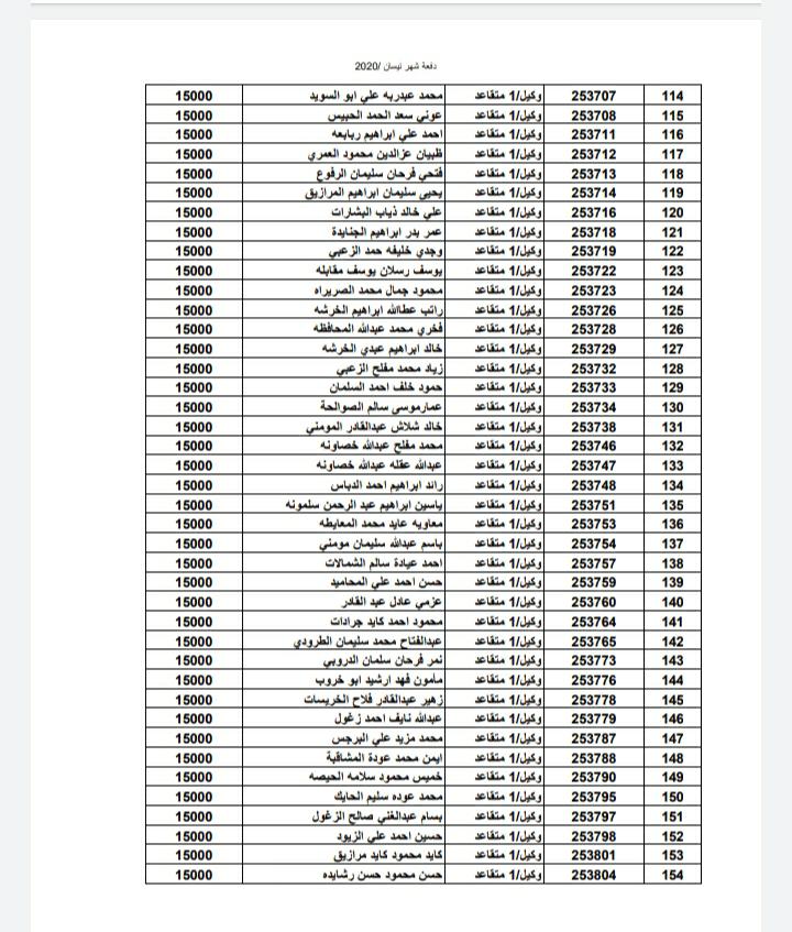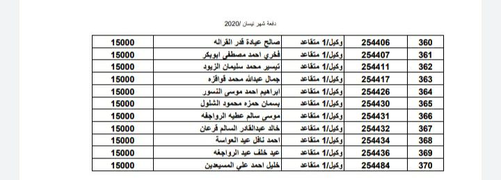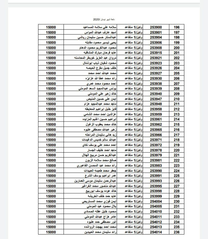 أسماء المستفيدين من ضباط وضباط صف وأفراد شهر 4-2020